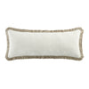 - Crafted with both style and comfort in mind, the beautifully textured Kyra Cream White & Natural Bouclé Fringed Lumbar Cushion brings a softness and luxurious touch to your furniture. Perfect for styling beds, sofas and window seats.