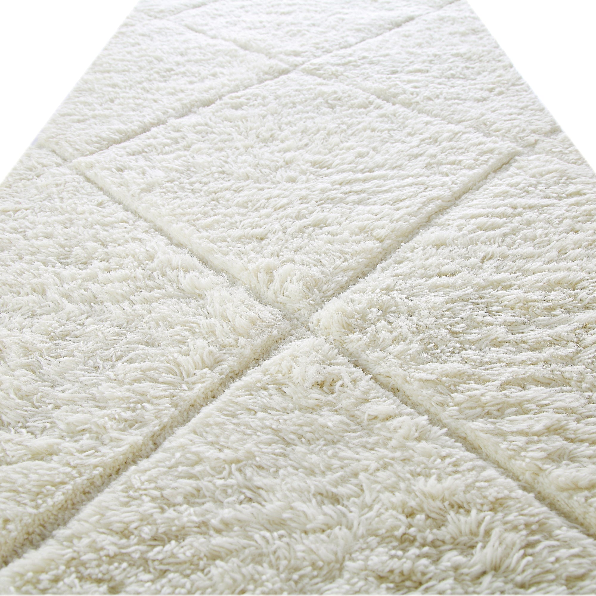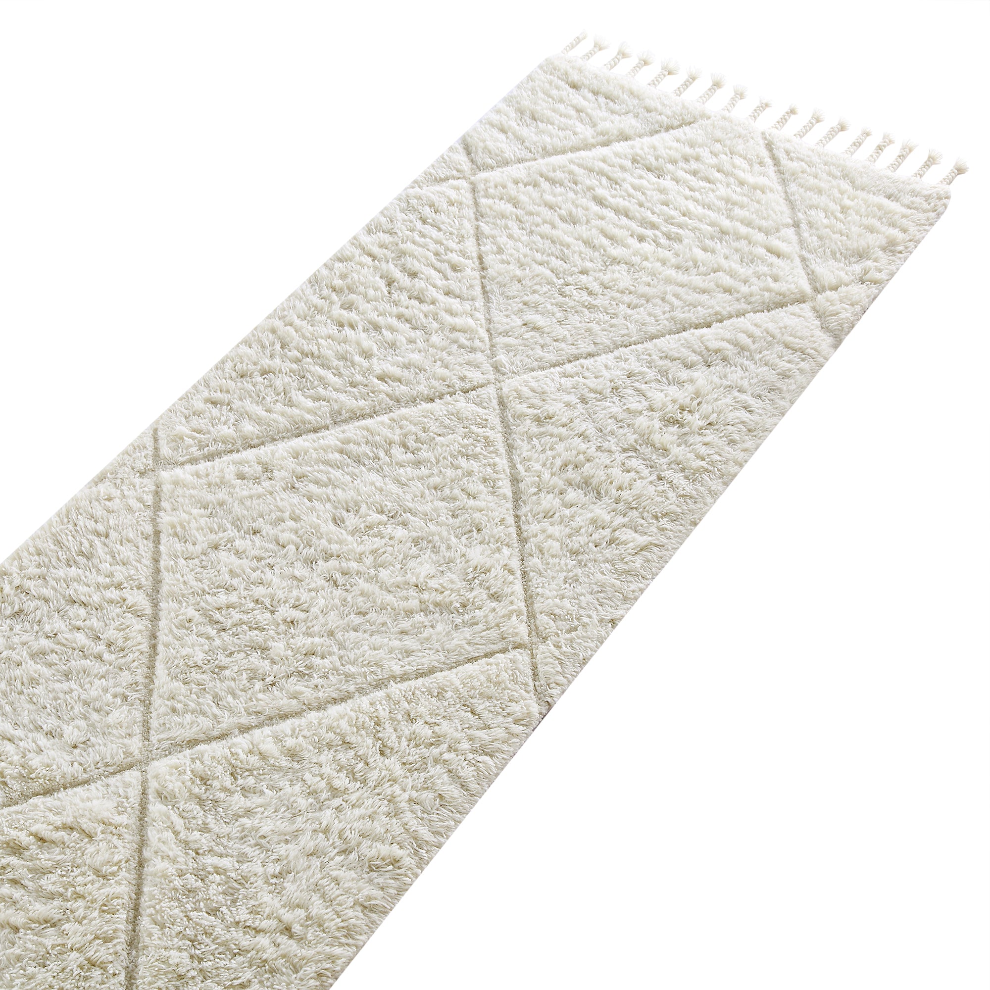 - The Lexi runner comprises of an eye-catching geometric design that forms part of the combination of dense low and high-pile wool, allowing the design to stand out whilst having a thick, fluffy feel underfoot.