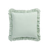- The beautiful seafoam green colour is reminiscent of the seaside, bringing a calming feeling of nostalgia and tranquility. While the charming ruffled border adds layers of texture and a whimsical, romantic ambience.