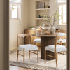 - Complete the look: Pictured with the Ludlow Ecru Boucle Oak Dining Chairs is our Maru Round Silver Oak Pedestal Dining Table, Ezri Border Brown Handwoven Wool & Jute Rug and Maru Oak Large 2-Door Sideboard with Drawers.