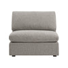 - Upholstered with textured taupe boucle fabric for a contemporary look.
