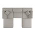 - Upholstered with textured taupe boucle fabric for a contemporary look.