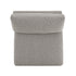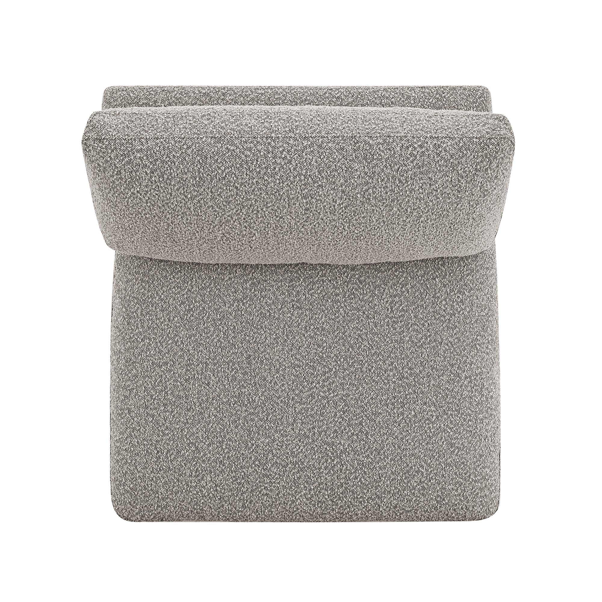 - Upholstered with textured taupe boucle fabric for a contemporary look.