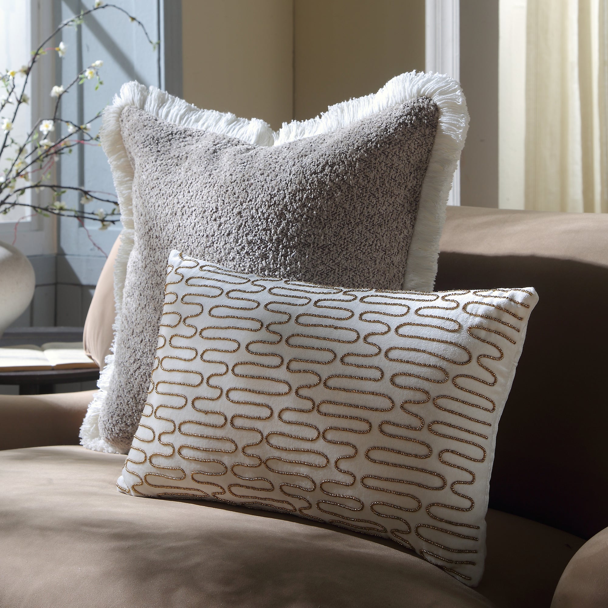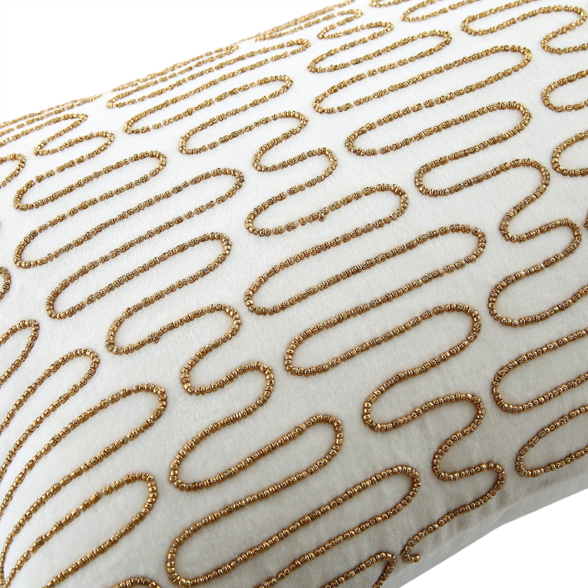 - The Allegra cushion has been made from sumptuous pearl white cotton velvet and beautifully adorned with golden beads, making it the perfect solution for glam décor.