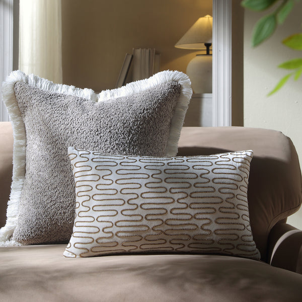 - Complete the look: Pictured with our Luxe Collection Allegra Velvet Cushion is our Daphnis Camel Velvet Loveseat and our Kyra Stone Boucle Fringed Cushion