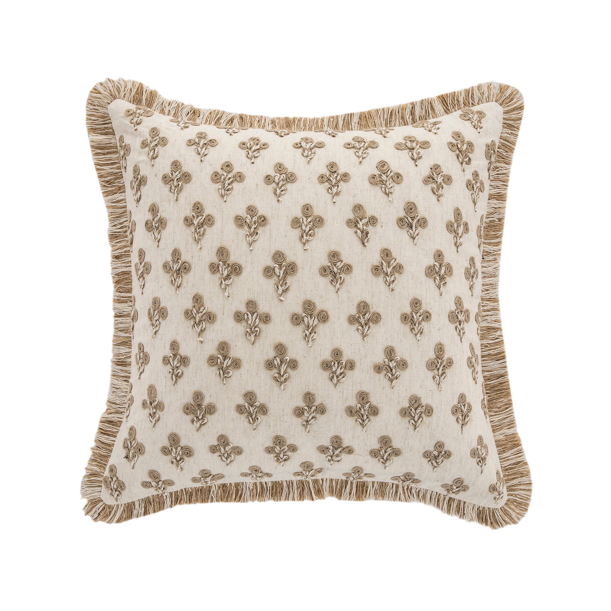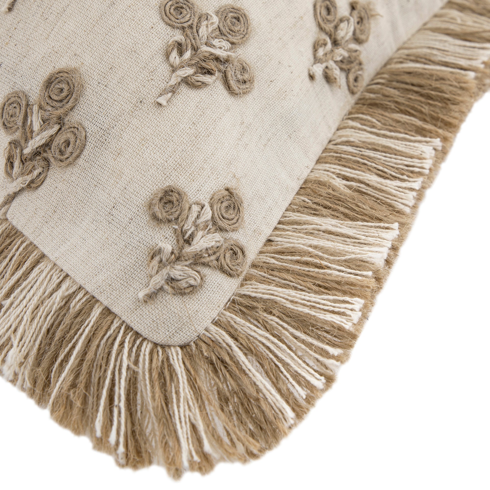 - Complete the look: Pictured with the Maison Neutral Betsy Jute Floral Fringed Cushion is our Bloomsbury Lattice Grey Crewelwork Wool Embroidered Cushion.