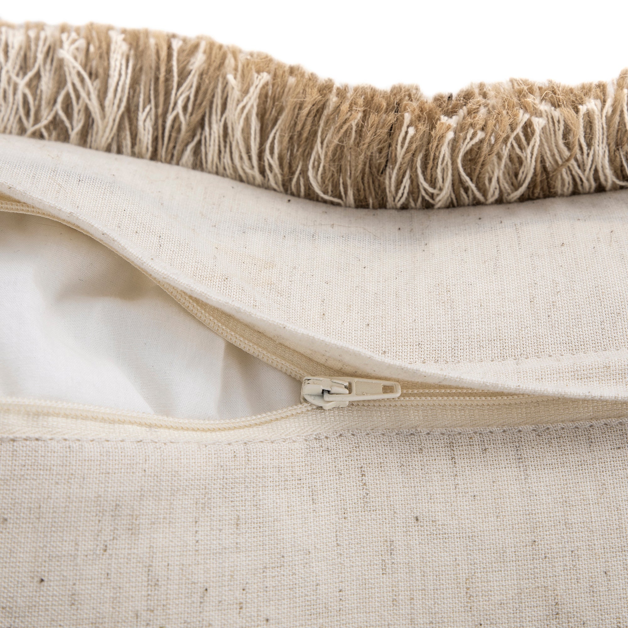 - Fringing made from Jute and fancy cotton slub yarn creates a two tone effect to complete the look