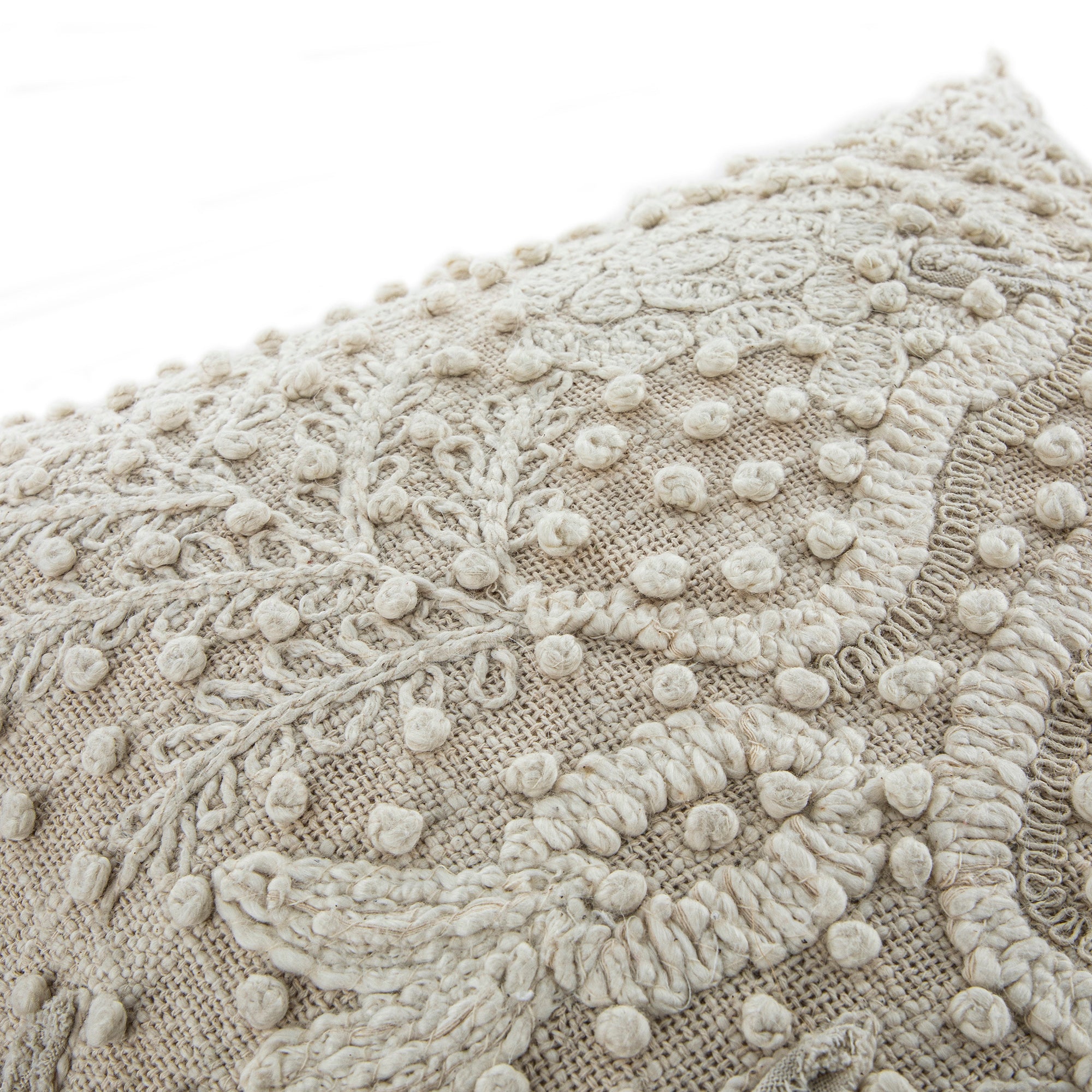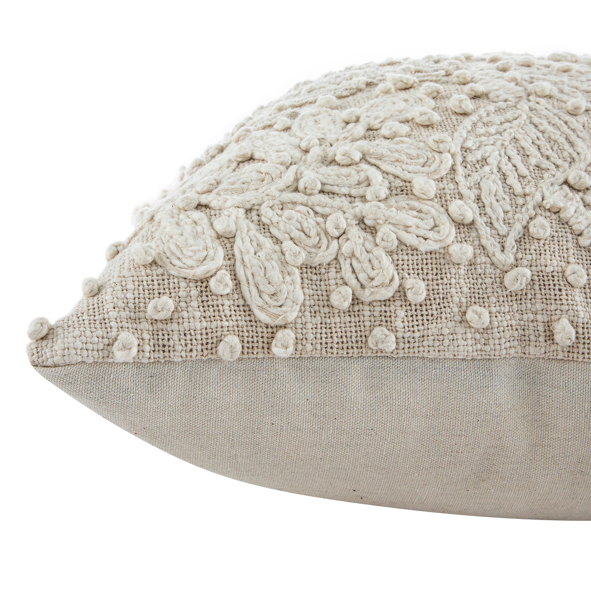 - The cream cushion features beautifully intricate detailing of foliage and florals which has been achieved using cotton embroidery and handmade French knots to create a textured design.
