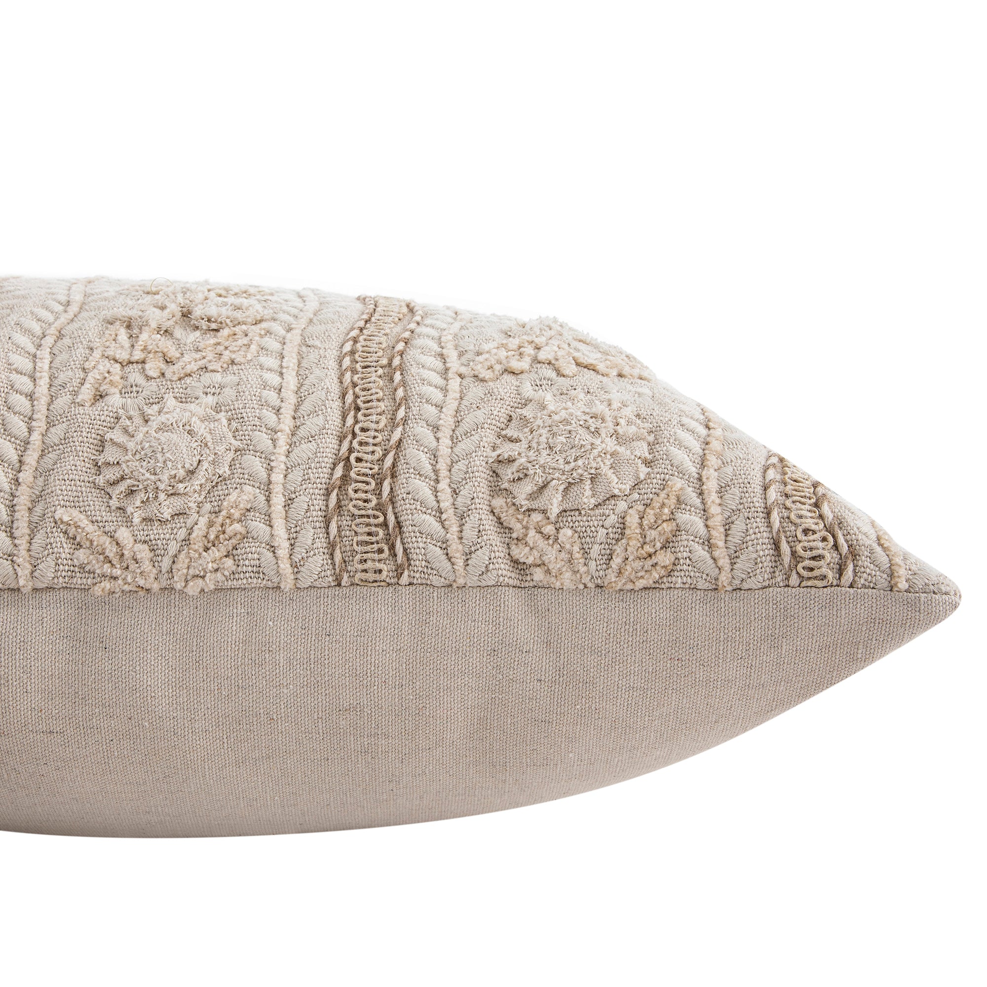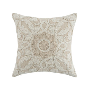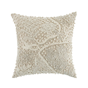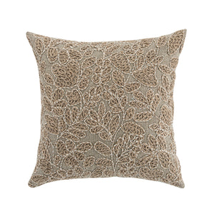 - The cushion features a delicate repeat pattern of flowers and foliage which has been achieved using Jute lace and cotton thread stitches to create a textured design, all of which really sets this beautiful cushion apart.