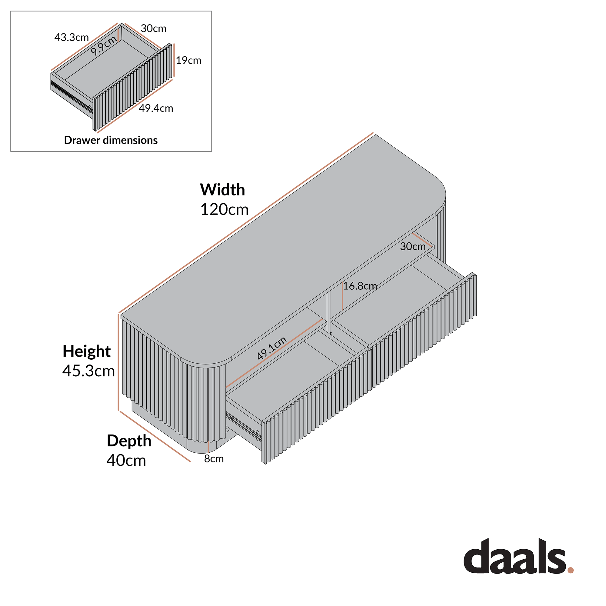 • Overall size: W 120.0 x D 40.0 x H 45.3 cm