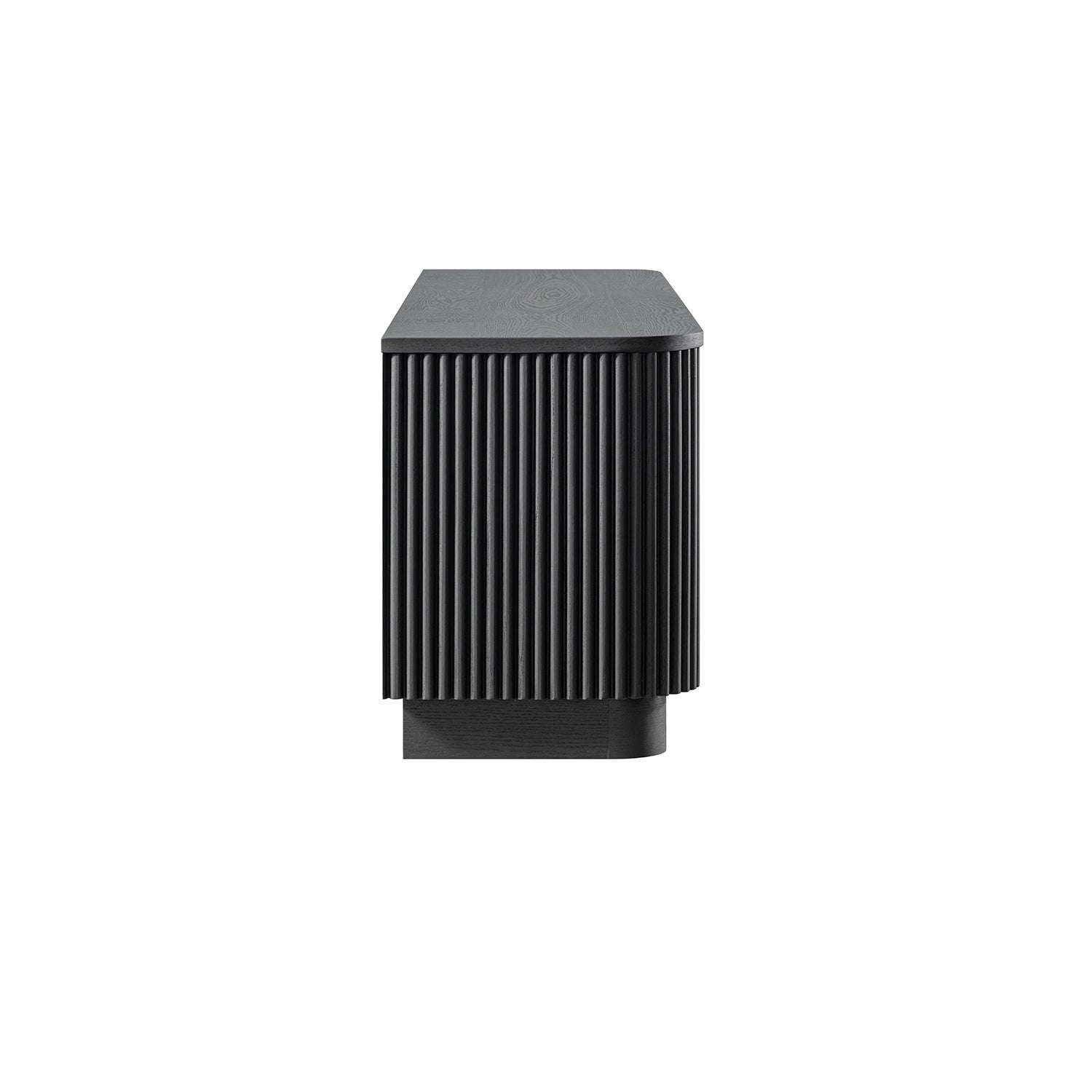 - Crafted from solid ash and ash veneer, its ebony finish enhances the vertical fluting and softly curved form, creating bold texture and clean visual rhythm.