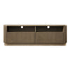 - Two push-open drawers provide generous concealed storage, while open shelving above offers space for media consoles, complete with rear cut-outs for seamless cable routing.