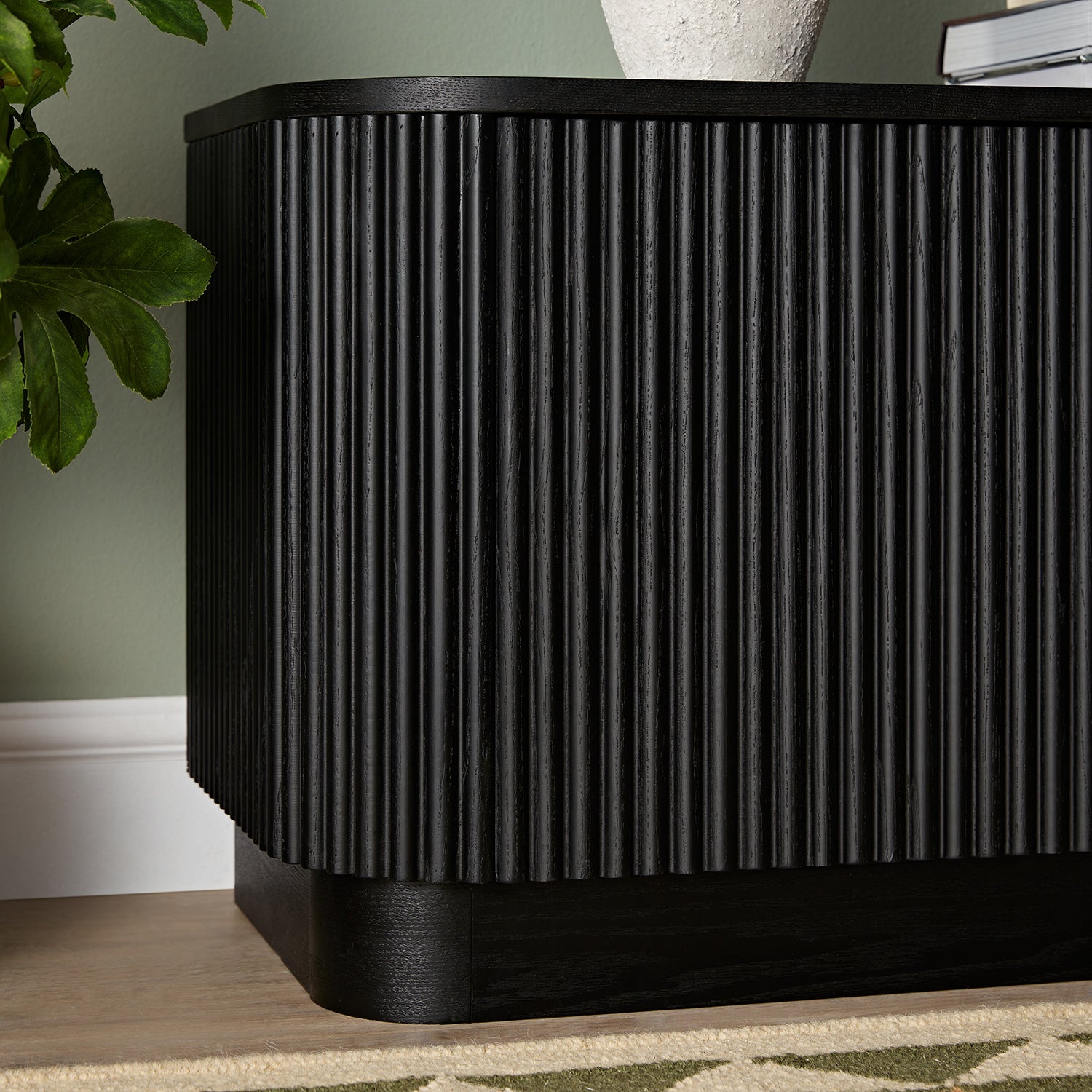 - Crafted from solid ash and ash veneer, the ebony finish enhances the natural grain while lending the piece a refined, architectural quality