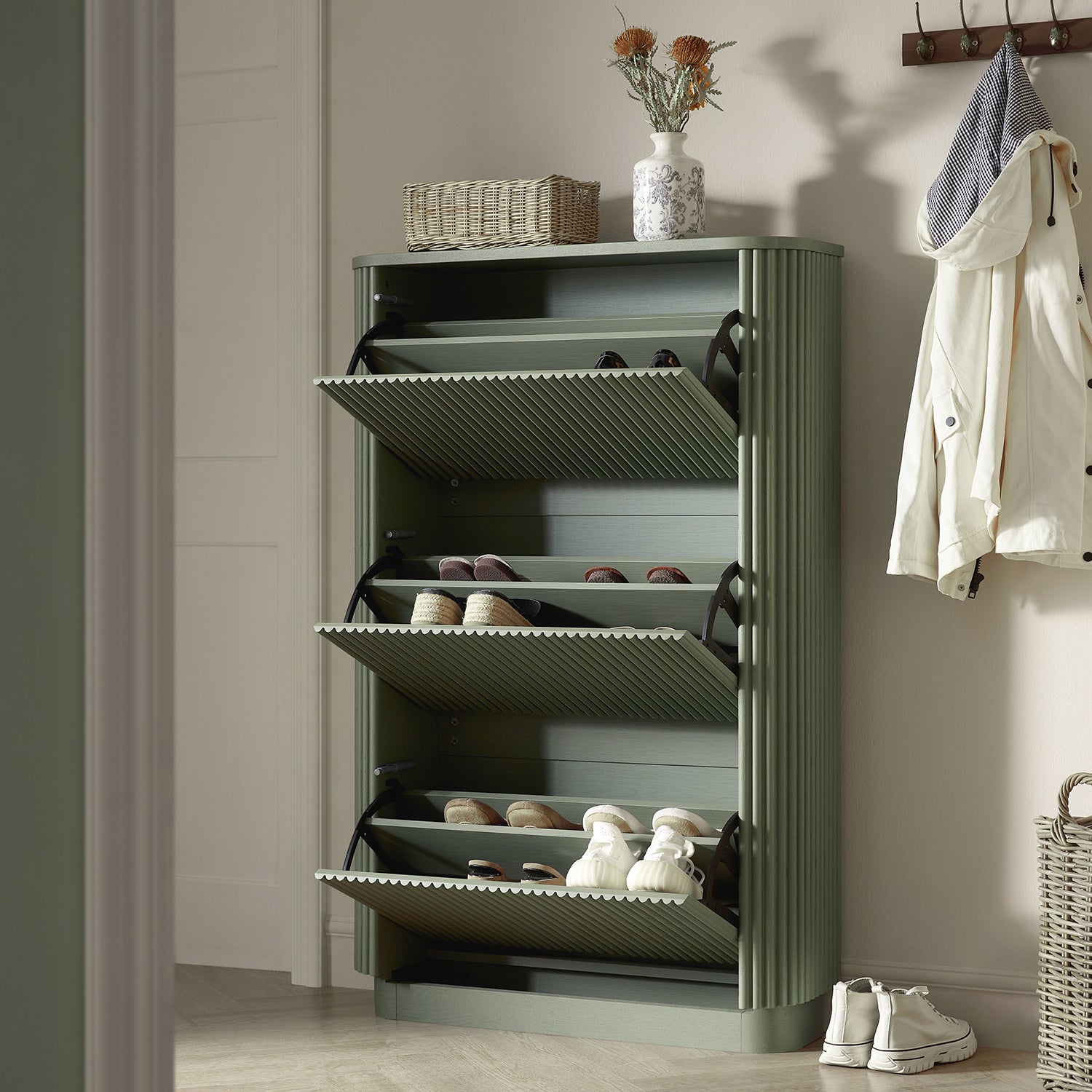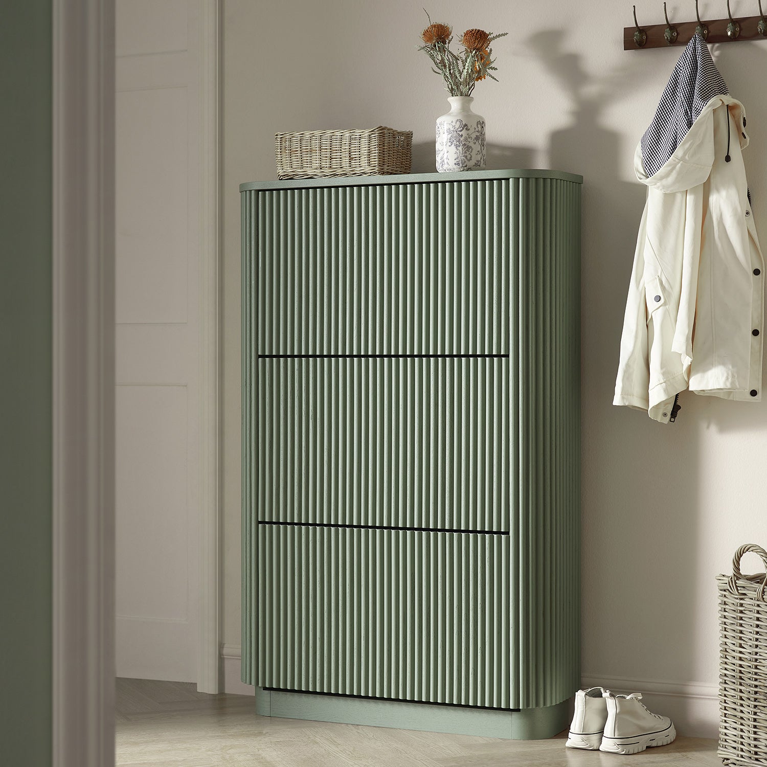 Maru 3-Door Shoe Storage Cabinet, Sage Green