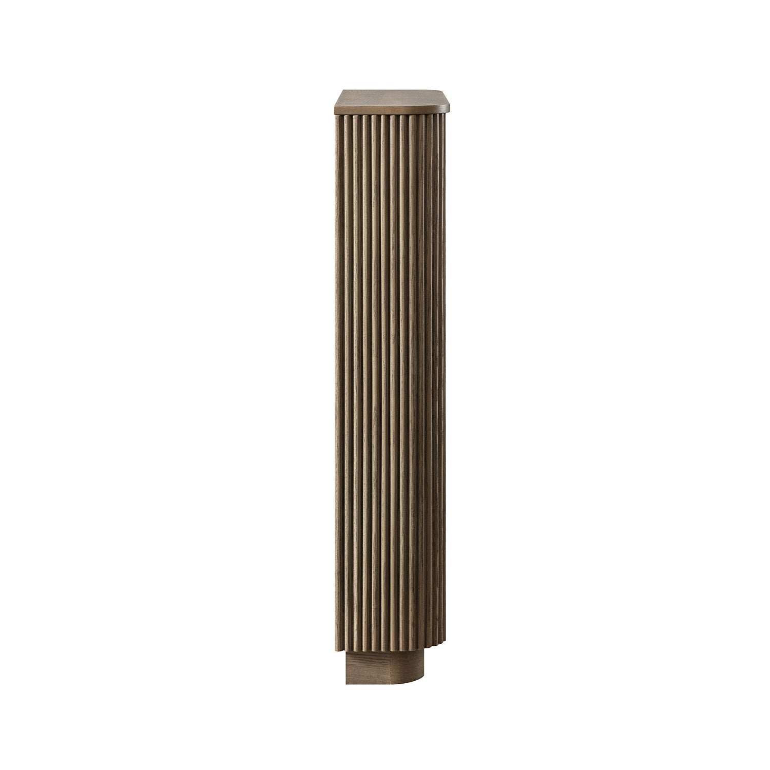 - Crafted from solid ash wood and ash veneer, the cabinet features Maru’s signature vertical fluting across softly rounded corners, offering tactile appeal and visual rhythm.
