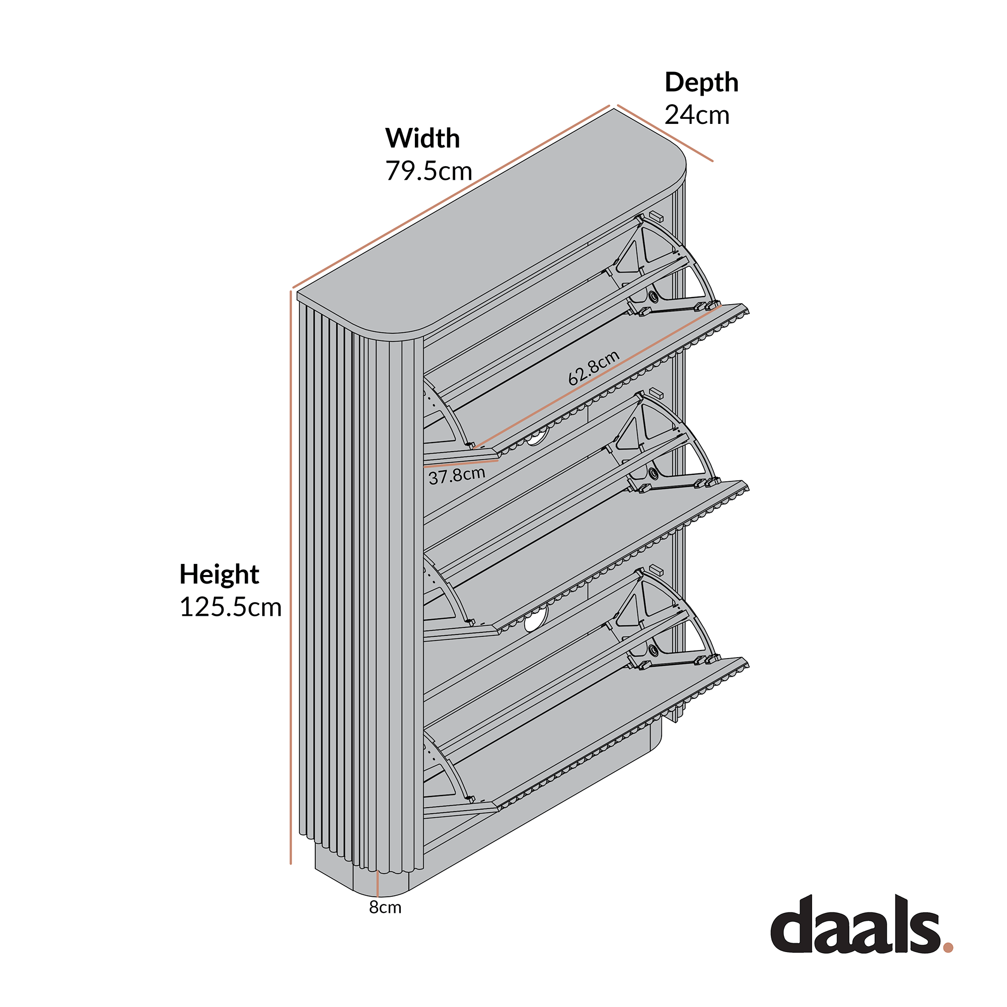 - Elegant, tactile, and space-savvy, our Maru Shoe Cabinet in Washed White blends sculptural form with everyday function.