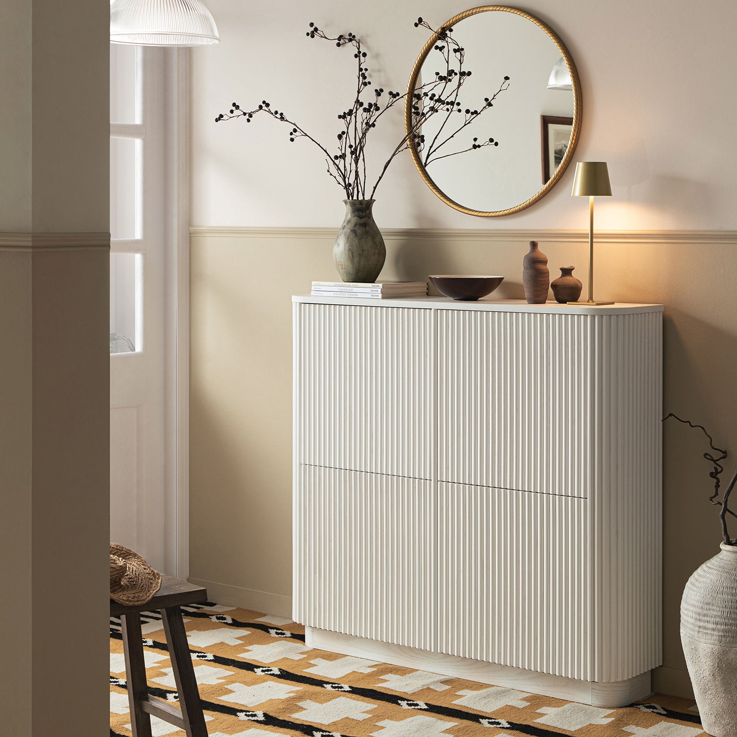 Maru 4-Door Shoe Storage Cabinet, Washed White