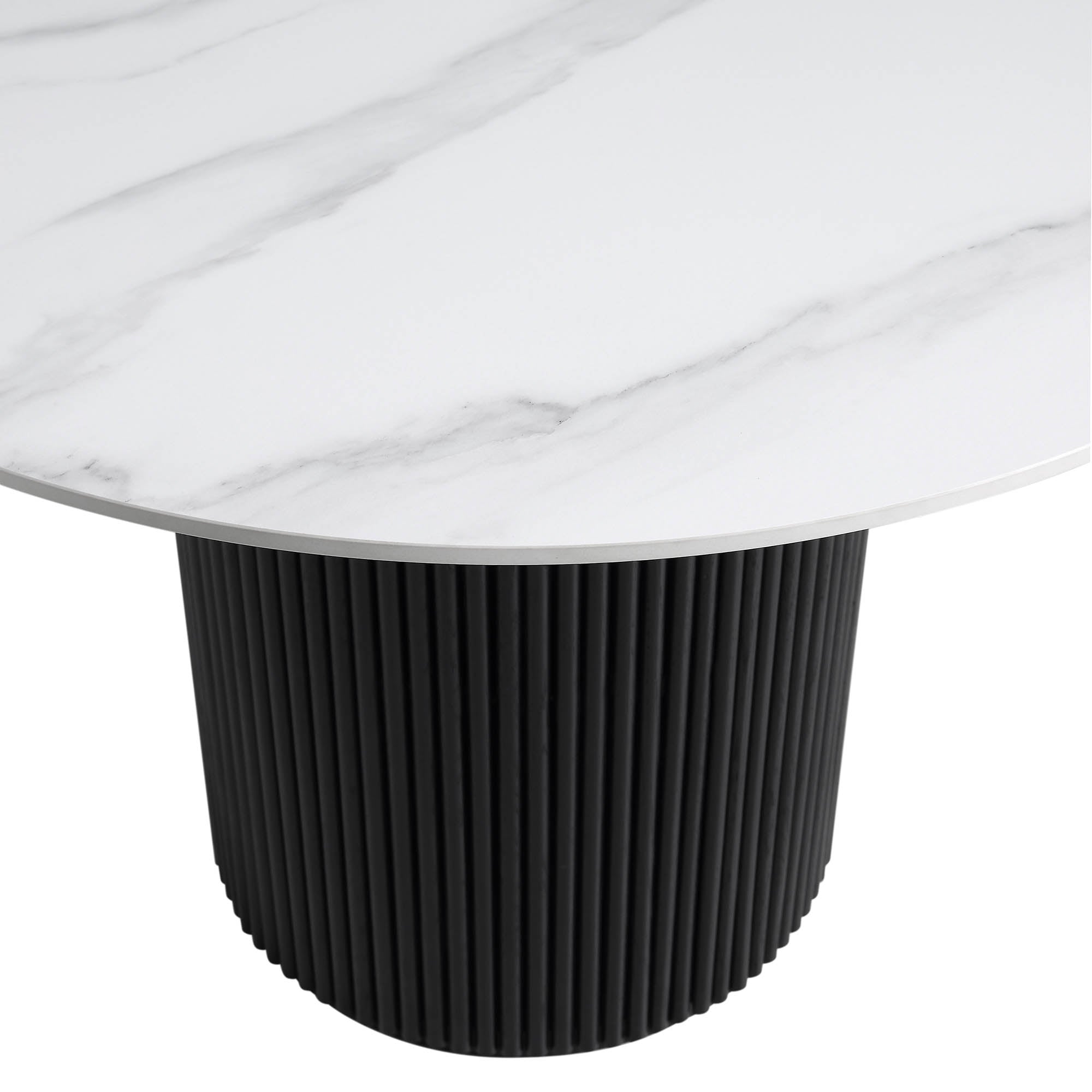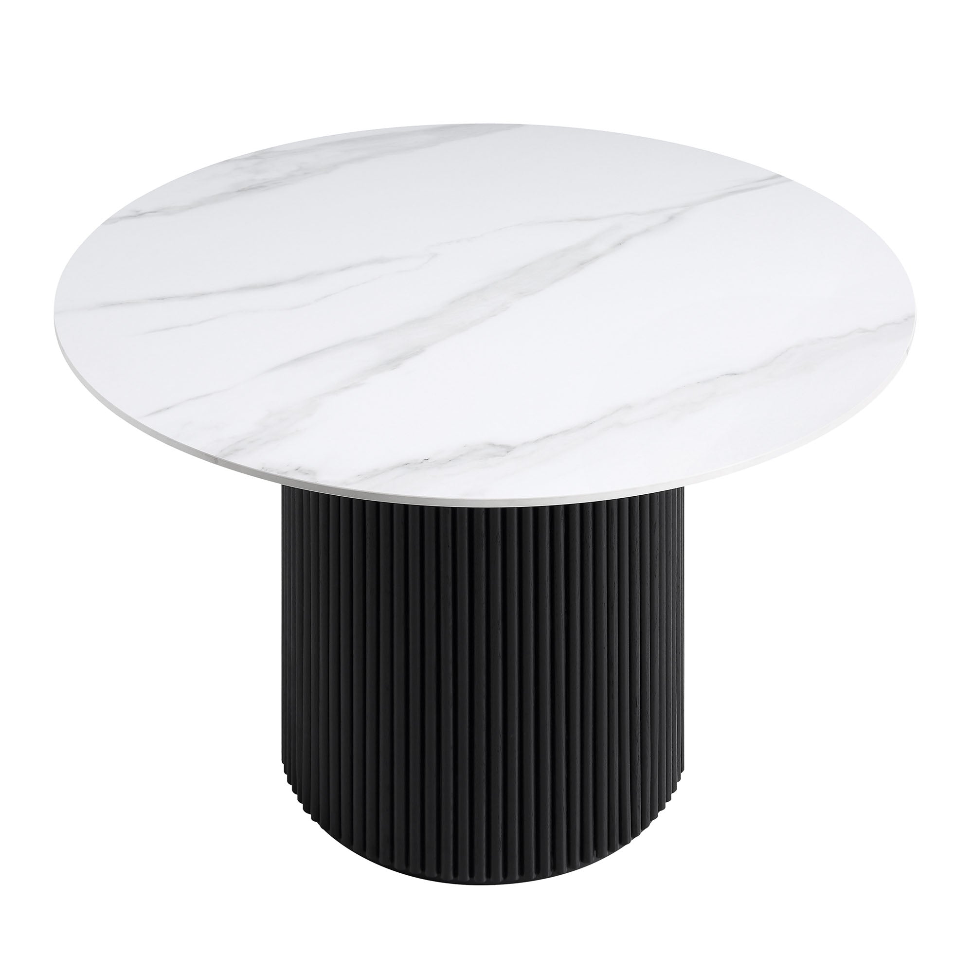 - Our much loved Maru dining table is now available in black with upgraded design of fluted pedestal base and ceramic table top.