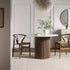 - The Maru Dining Table boasts contemporary Japandi style with pedestal base made from solid oak.