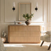 - Vertical fluting wraps the piece on front and both sides in subtle rhythm and texture, while the softly curved corners and recessed plinth base keep the profile grounded yet elegant.