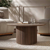 - The Maru Coffee Table boasts contemporary Japandi style with pedestal fluted base made from solid oak.