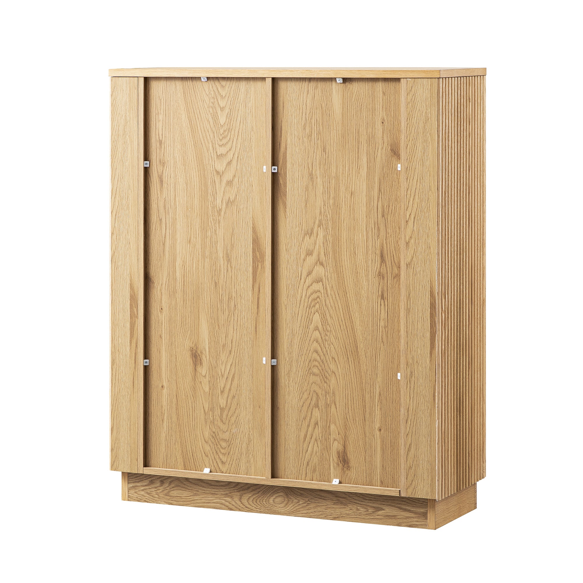 • Our Maru Tall Cabinet in Oak pairs architectural rhythm with versatile storage, offering a sculptural solution for living, dining, or entryway spaces.