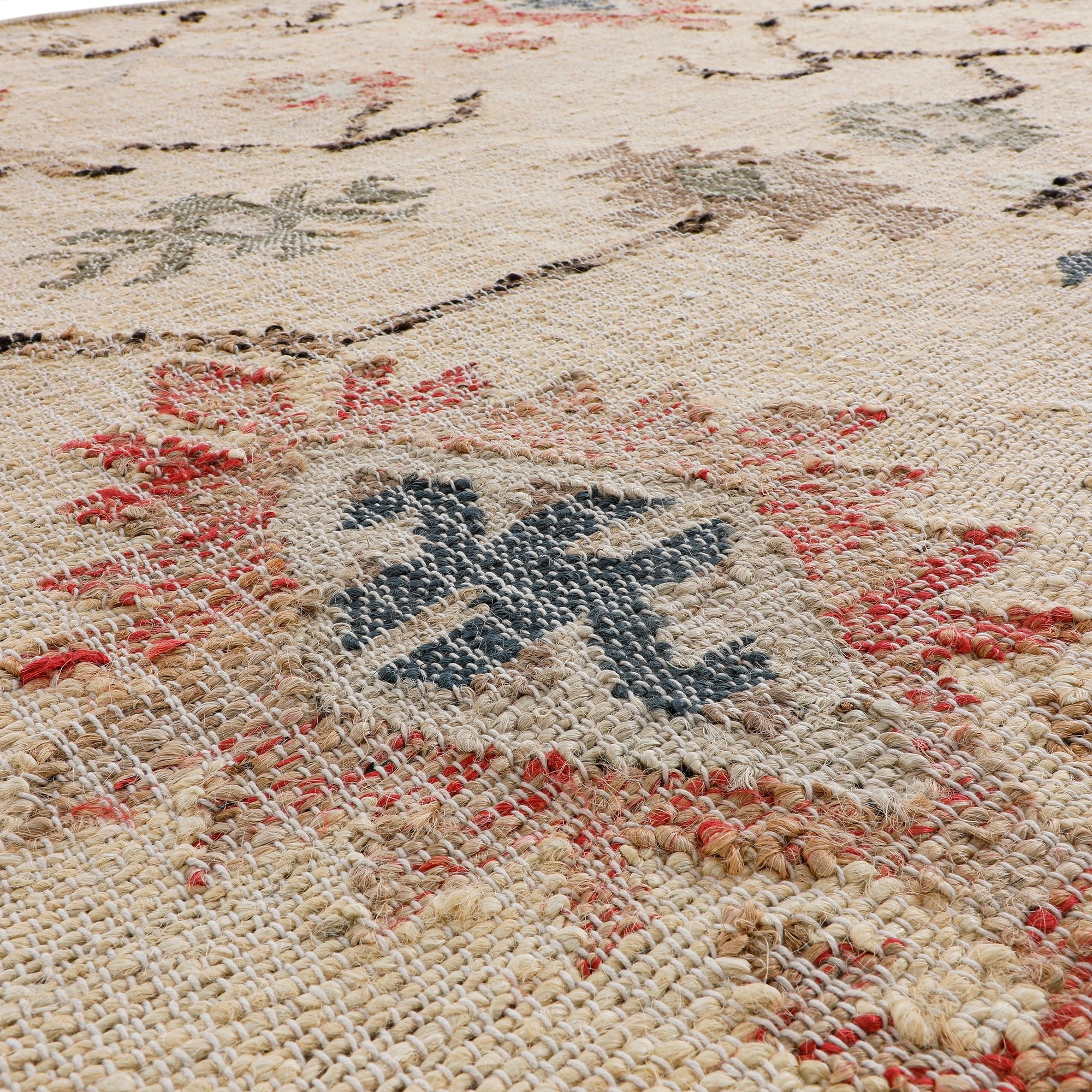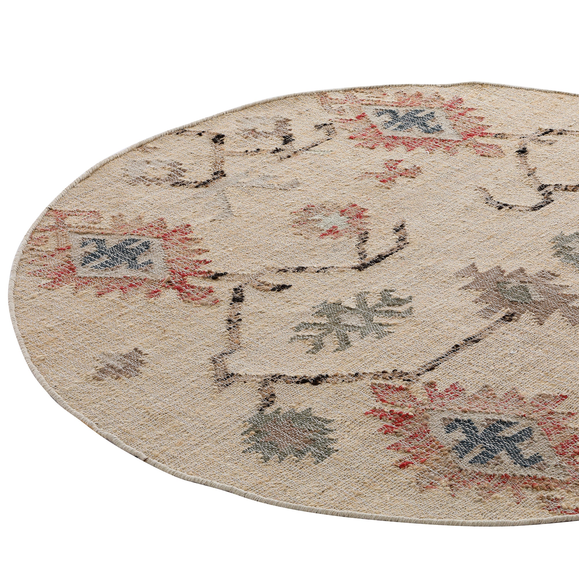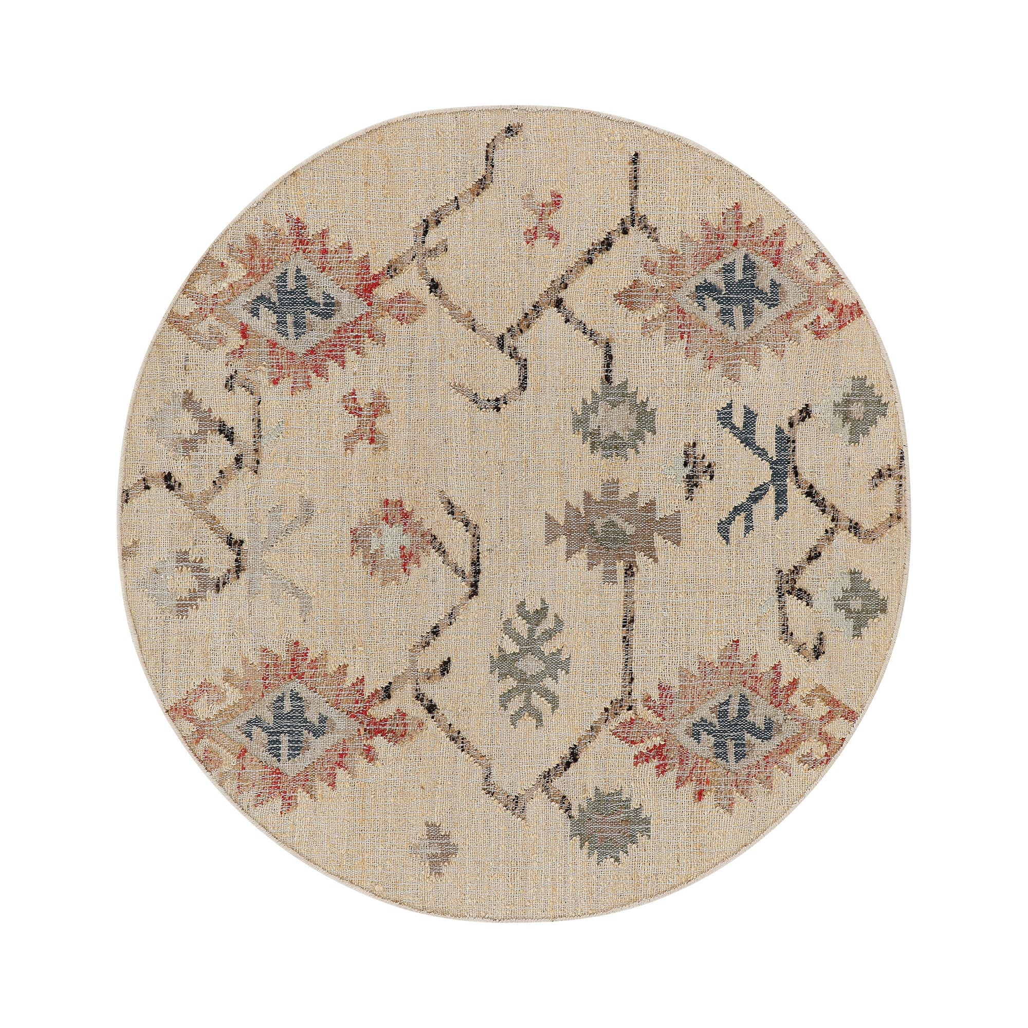 - Travel back in time and include a piece of Aztec inspired design into your home with our Matalya Kilim Traditional Handwoven Wool and Jute Cream Round Rug, bringing a real sense of culture.