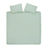 - The beautiful seafoam green tone of this bedding is reminiscent of the seaside, bringing a calming feeling of nostalgia and tranquility.