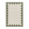 - This stylish cream rug is beautifully finished with a scallop olive green border, perfect for framing a coffee table or adding a touch of colour to any space