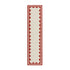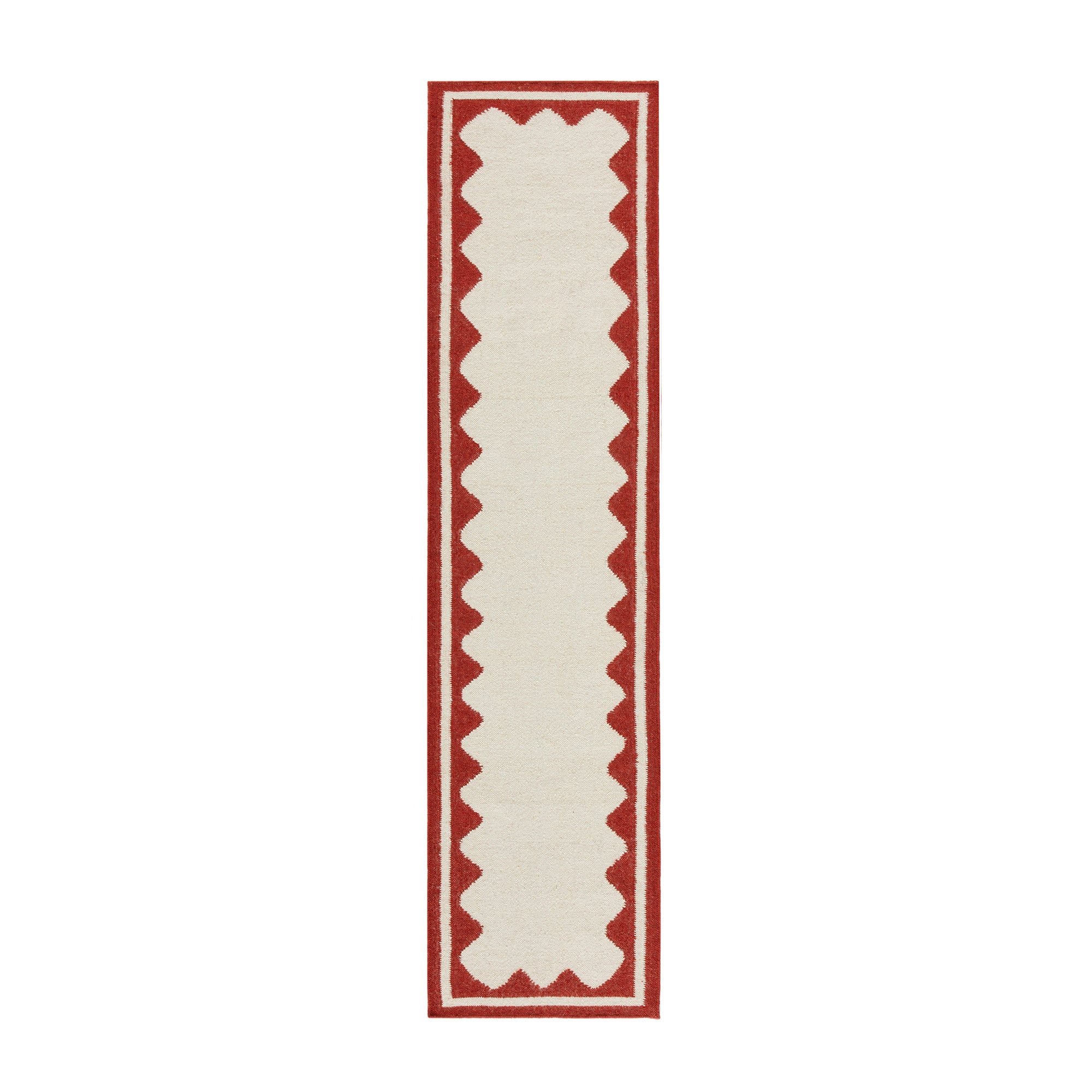 - This stylish cream runner is beautifully finished with a scallop scarlet red border, perfect for adding a touch of colour to any space.