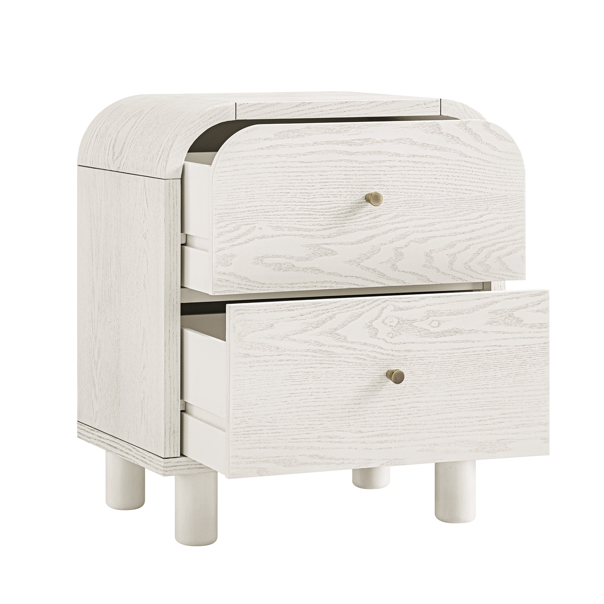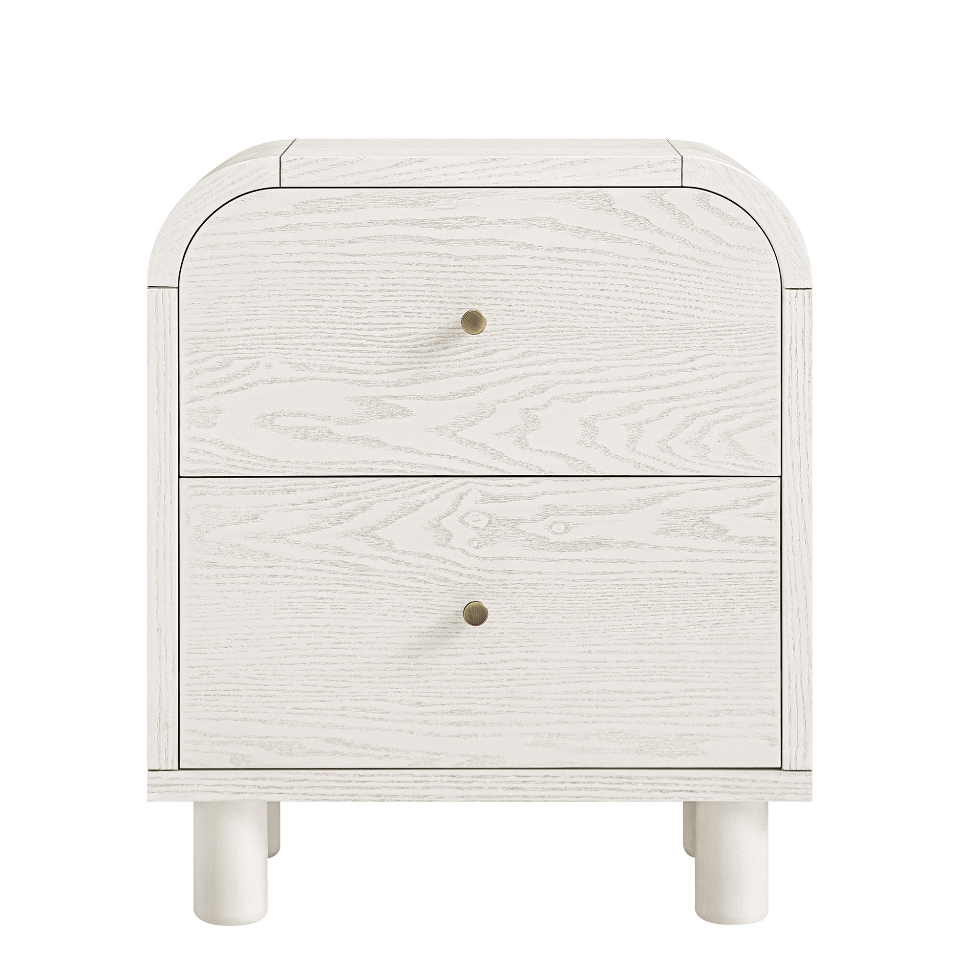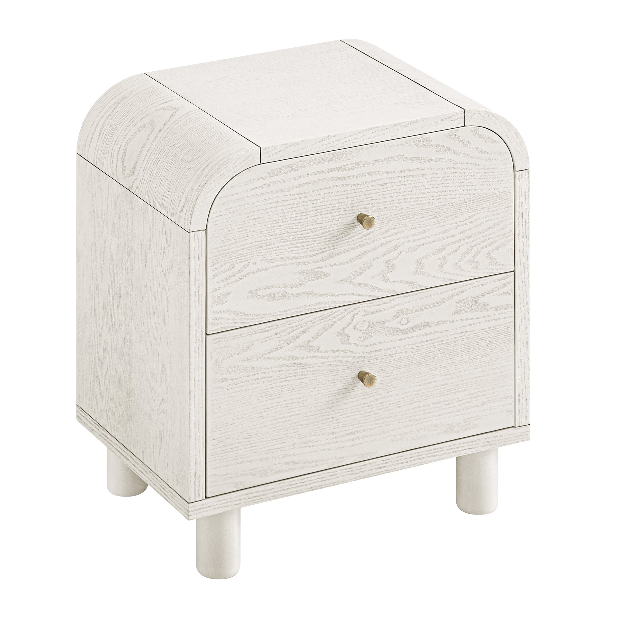 - The bedside table features solid ash veneer, paired with antique brass effect metal handles.