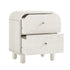 - Complete the look: Pictured with our Maude 2 Drawer Bedside Table is our Egerie Curved Headboard Ottoman Bed in Slate Blue Striped, and our Aurora Hand Braided Cream Jute Rug.