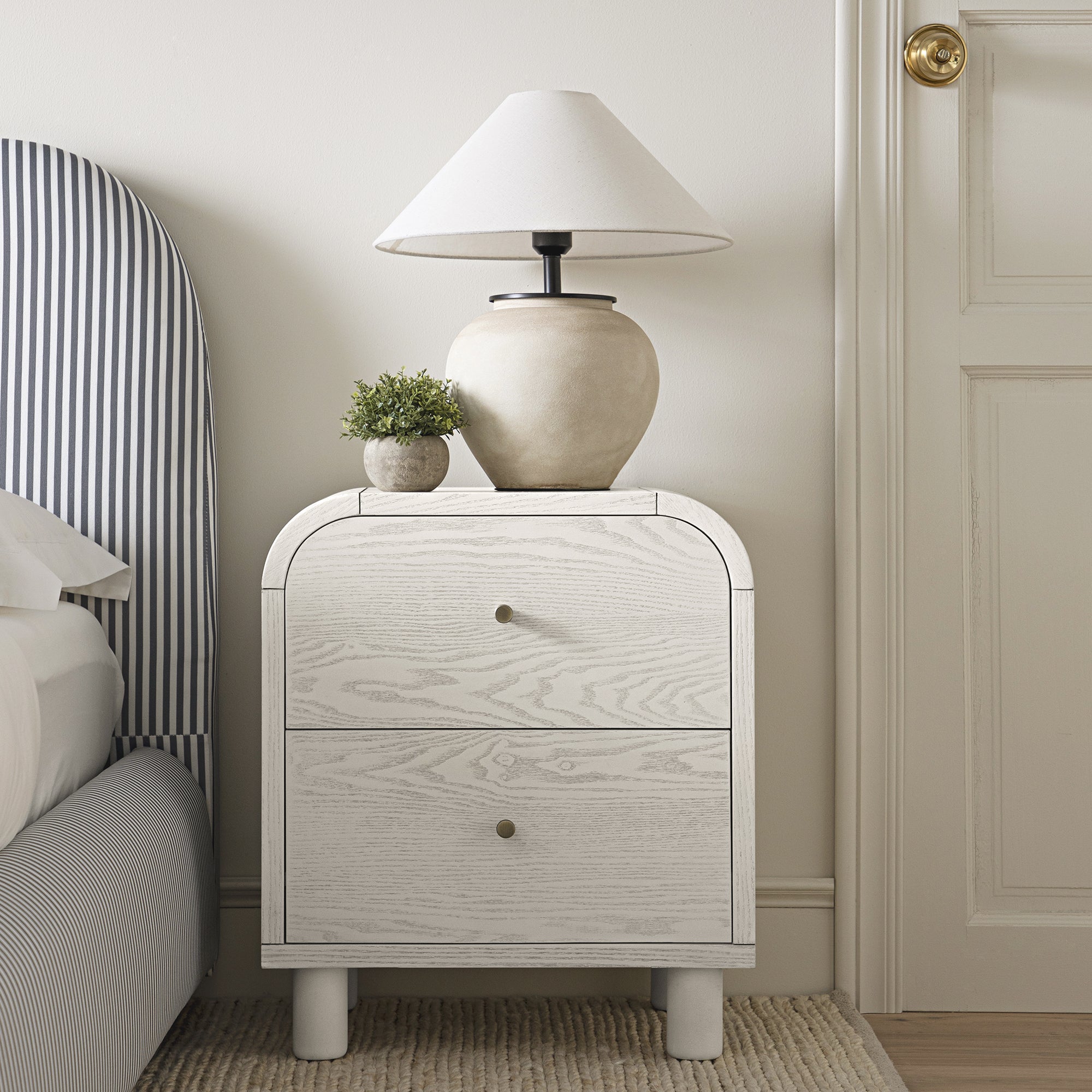 - Our Maude bedside table offers a beautiful elevating touch to your bedroom thanks to its rounded ash frame and legs.