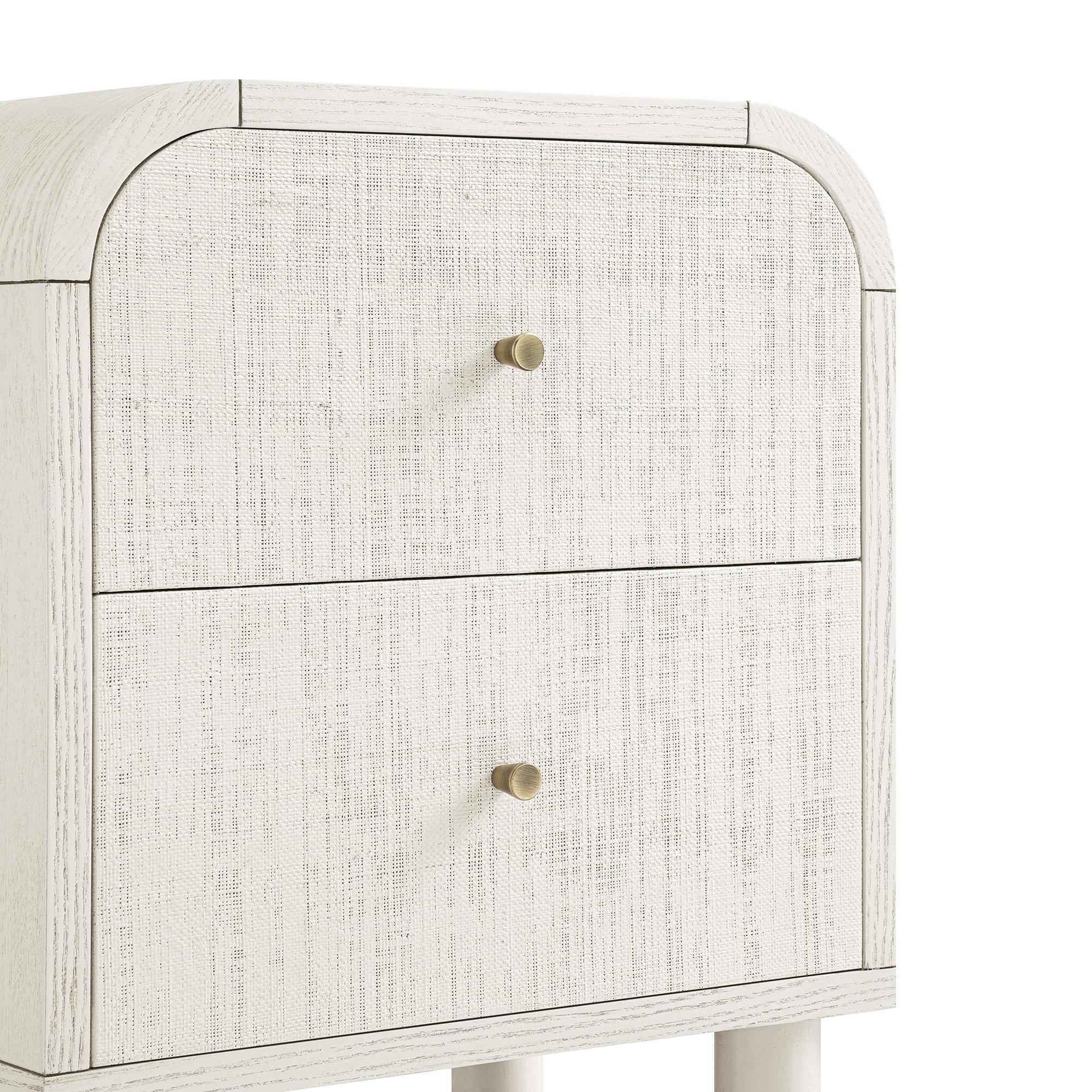 - White raffia-fronted drawers create an breezy soft appeal with beautiful natural texture.