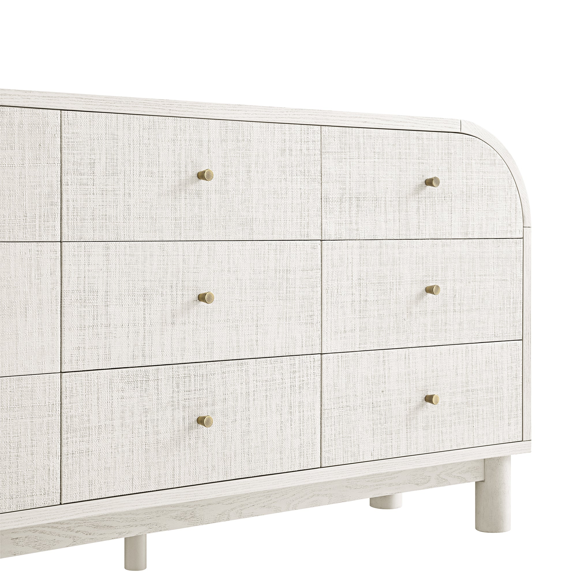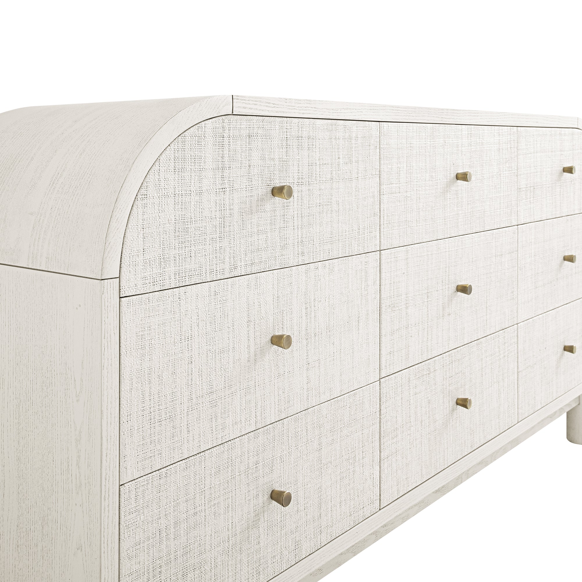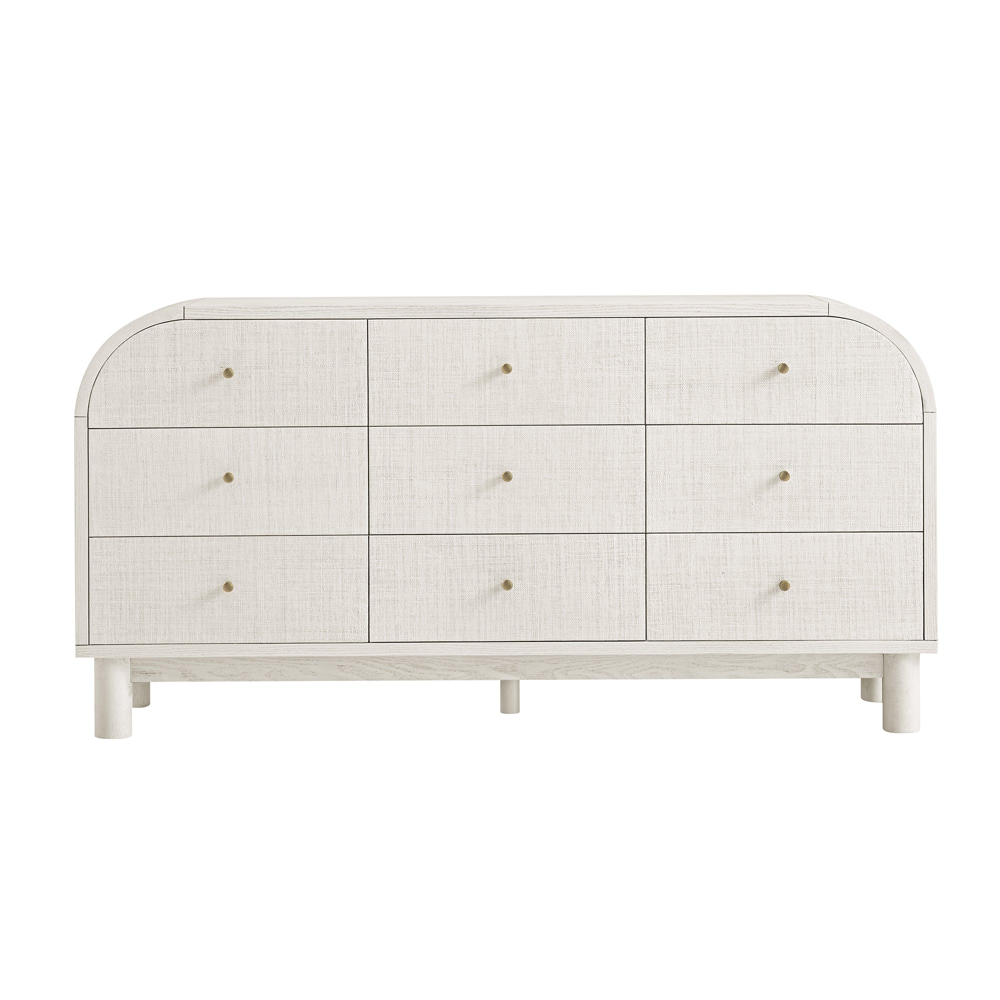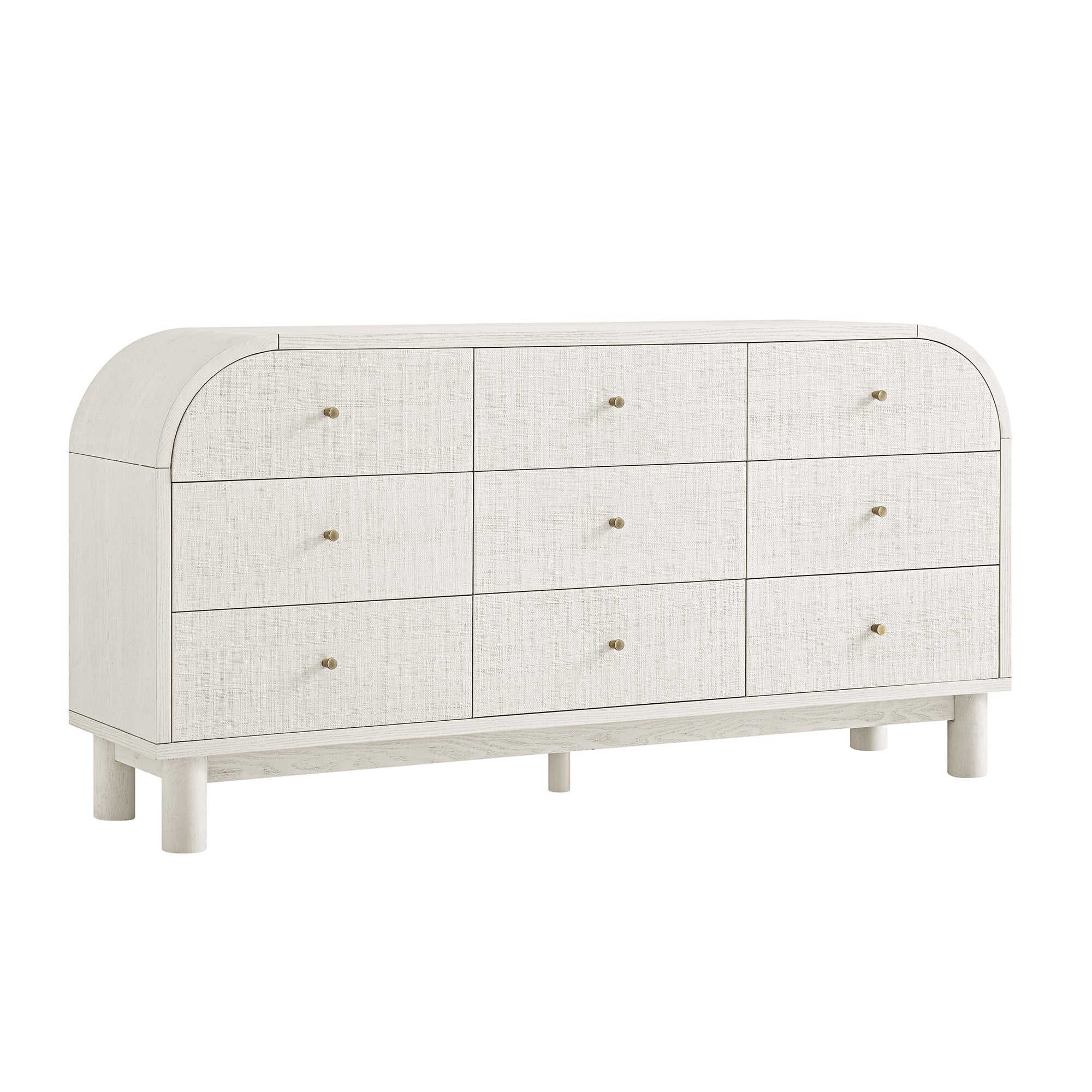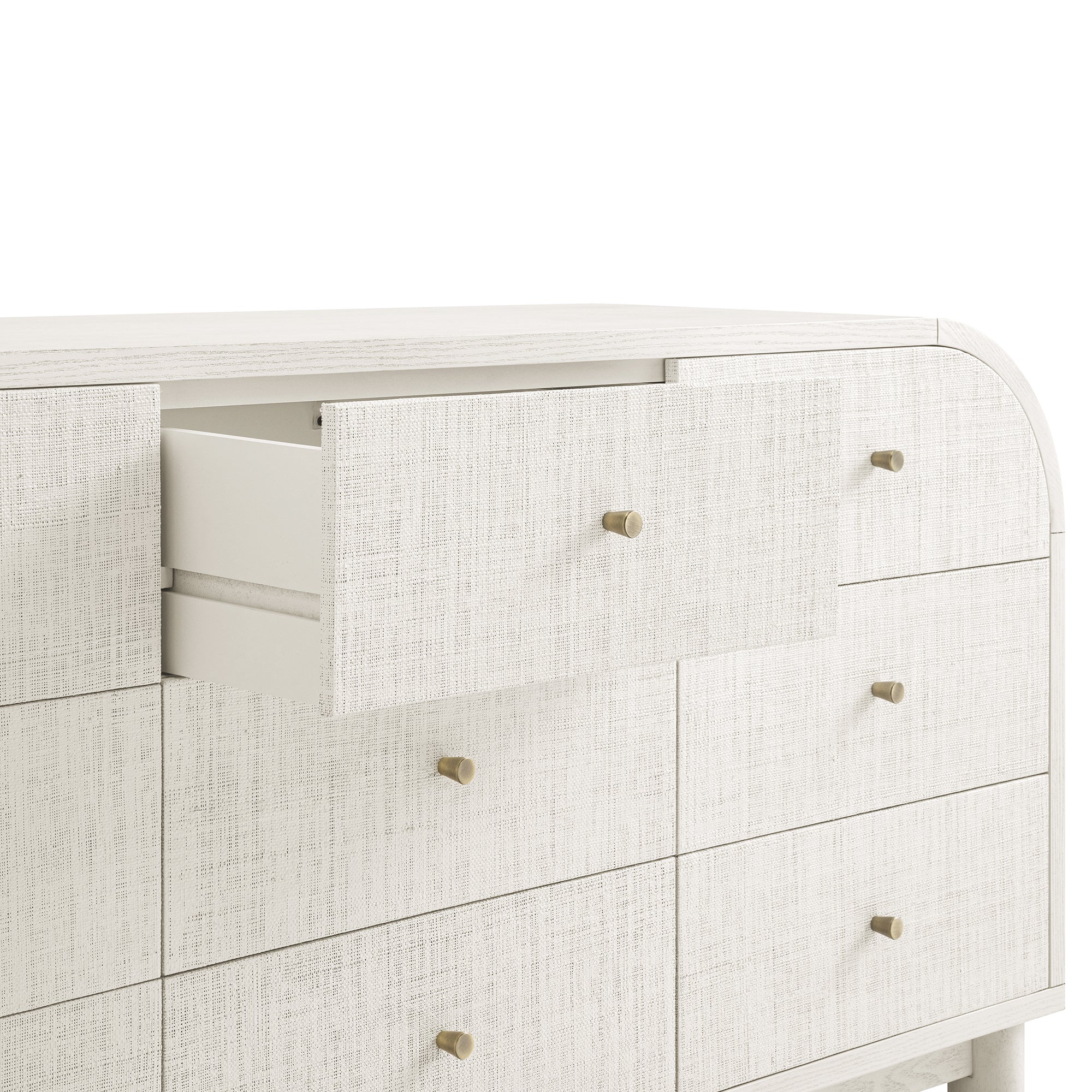 - Complete the look: Pictured with our Maude 9 Drawer Chest is our Aurora Hand Braided Cream Jute Rug and our Calliope Skirted Armchair in Beige Velvet