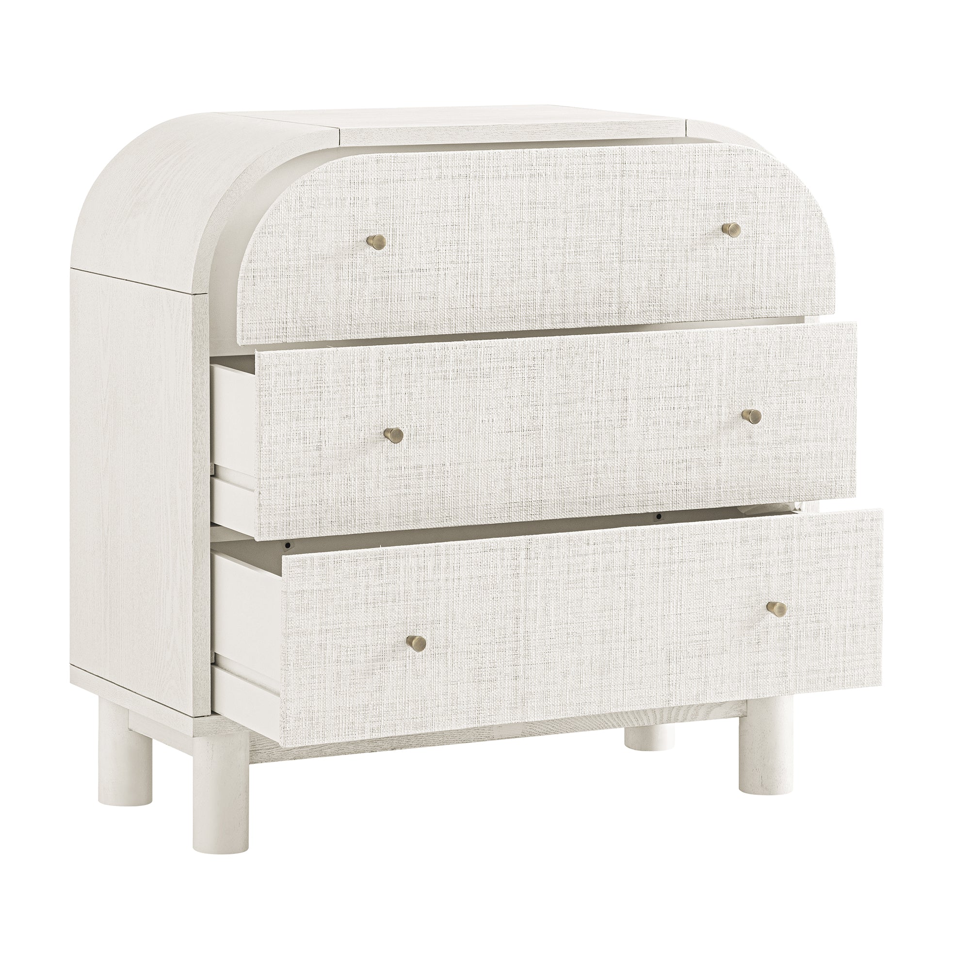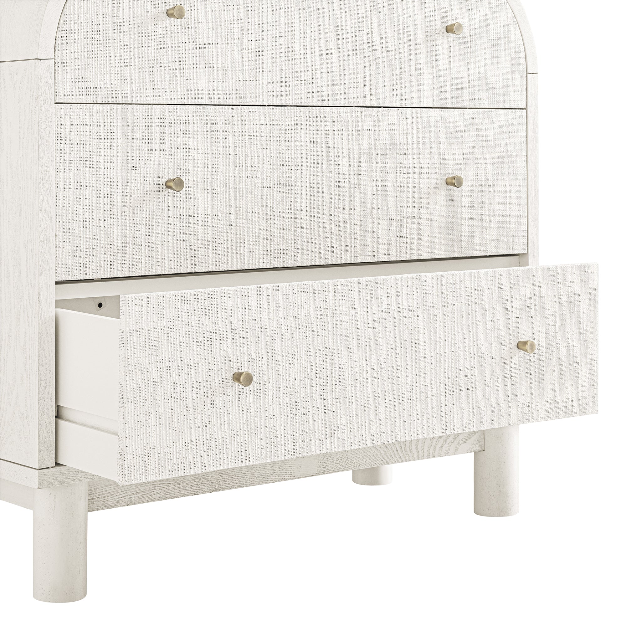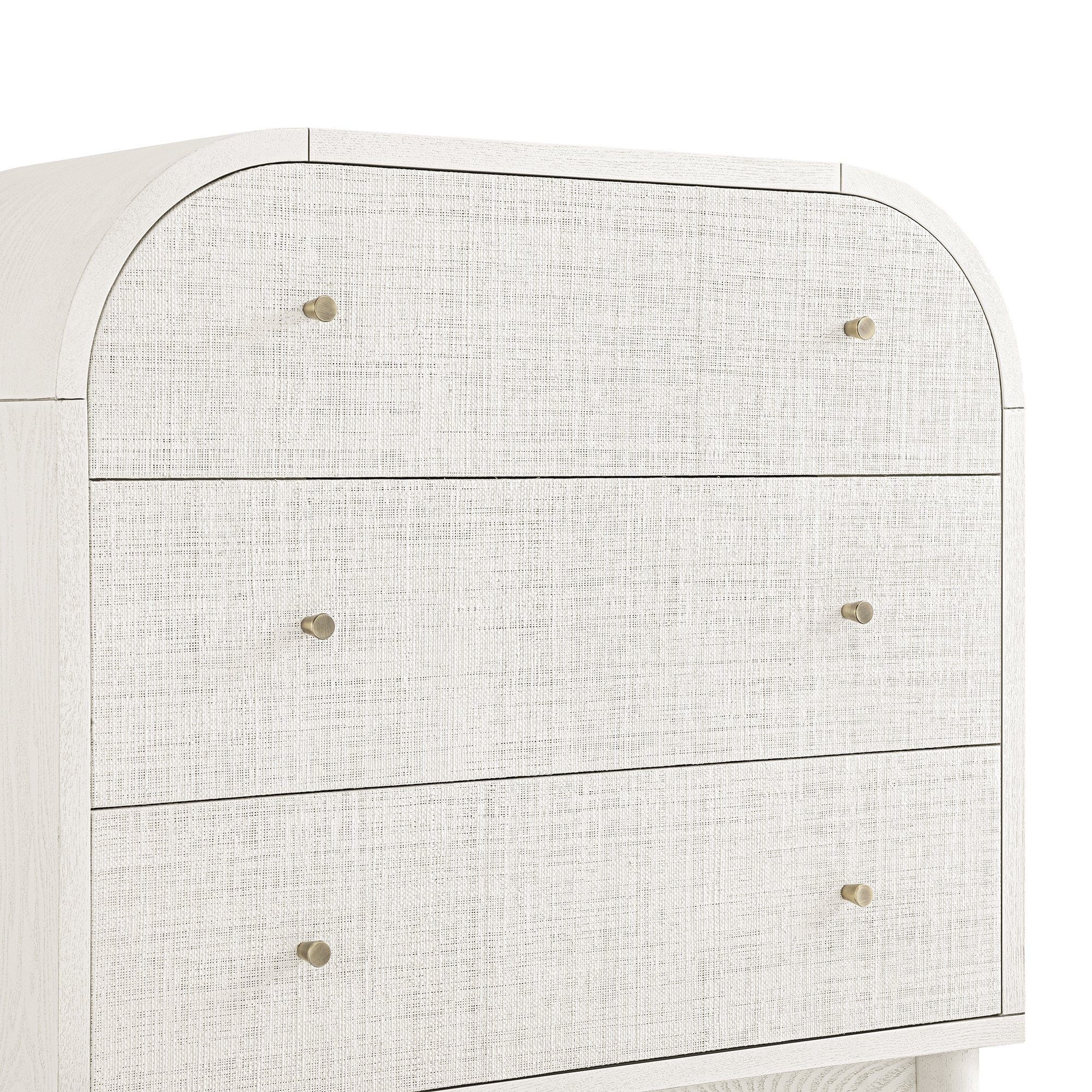 - White raffia-fronted drawers create an breezy soft appeal with beautiful natural texture.