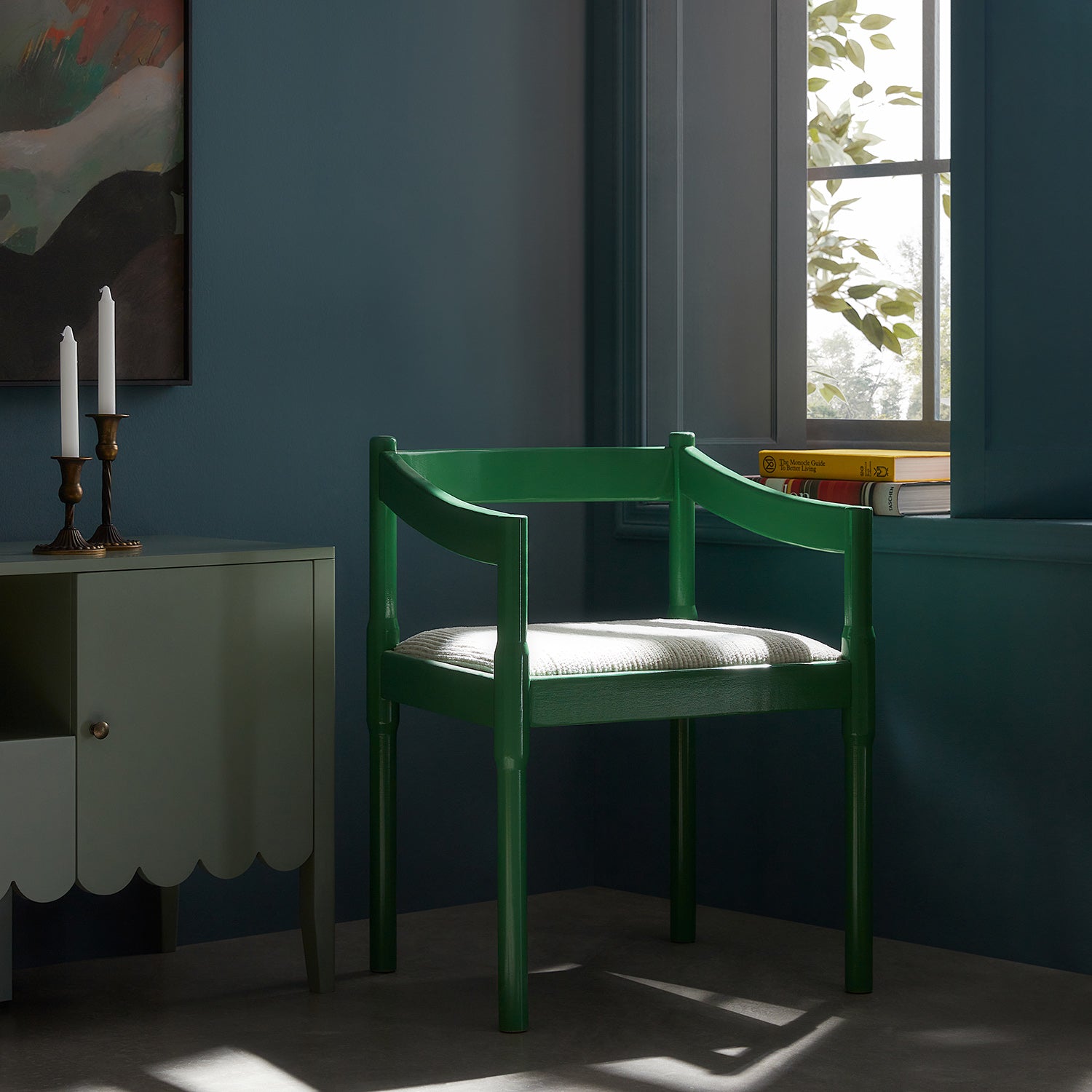 - The frame of the chair is made of solid beech wood, finished with high gloss paint in bright palm green colour.