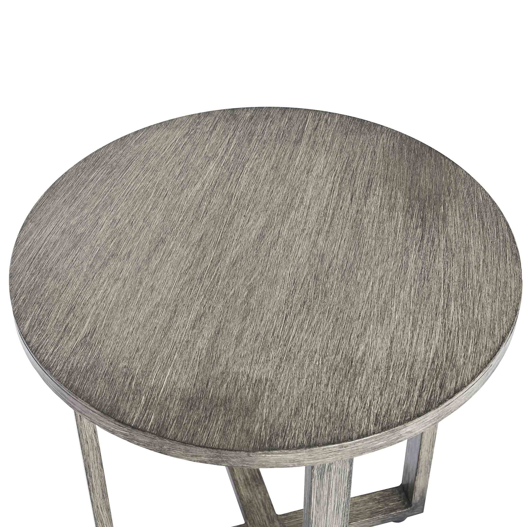 - Round aluminium side table in matching brushed silver oak effect finish.