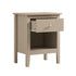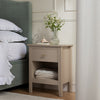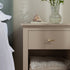 Complete the look: Pictured with the Oakham Deep Greige Bedside Table is our Aurora Hand Braided Cream Jute Rug, Chilworth Water Green Chenille Upholstered Ottoman Storage Bed, Matilda White Ruffle Duvet Set and Hotel Collection White 400TC Cotton Sateen Fitted Sheet.