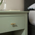 - Complete the look: Pictured with the Oakham Desert Sage Bedside Table is our Pembroke Stripe 100% Linen Green Cushion, Chilworth Dark Grey Upholstered Ottoman Storage Bed and Margot Bluebell Blue Embroidered Scallop Duvet Set.