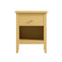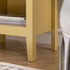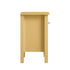 - The open shelf below invites curated display or practical storage, while the rattan yellow matted painted finish brings a warm, sun-washed feel that’s both uplifting and grounded.