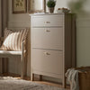 - Neat, versatile, and quietly refined, our Oakham 2-Tier Shoe Cabinet in Deep Greige offers a practical storage solution with a polished finish.