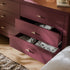 - A combination of rich, grounded colour and refined simplicity, our Oakham Chest of 6 Drawers in Wild Cherry brings warmth and personality to any bedroom.