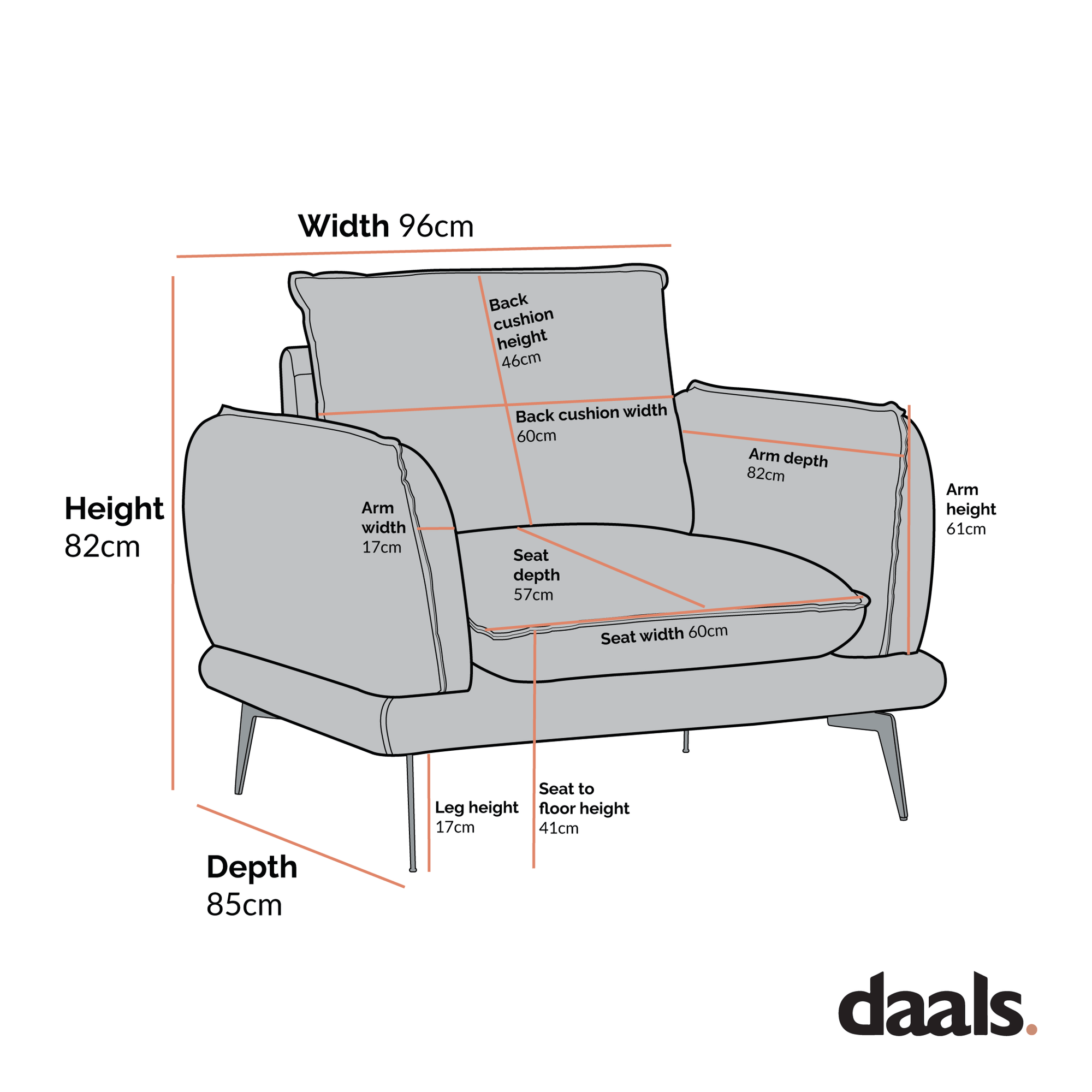 - 1-Seater sofa size: W 96 x D 85 x H 82 cm