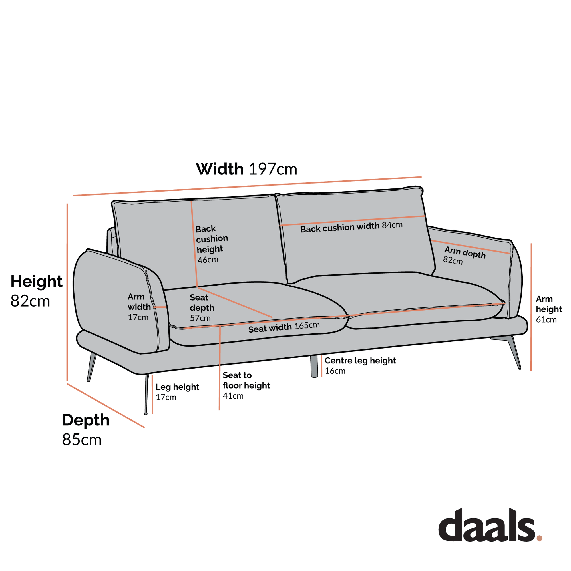 - 3-Seater sofa size: W 197 x D 85 x H 82 cm