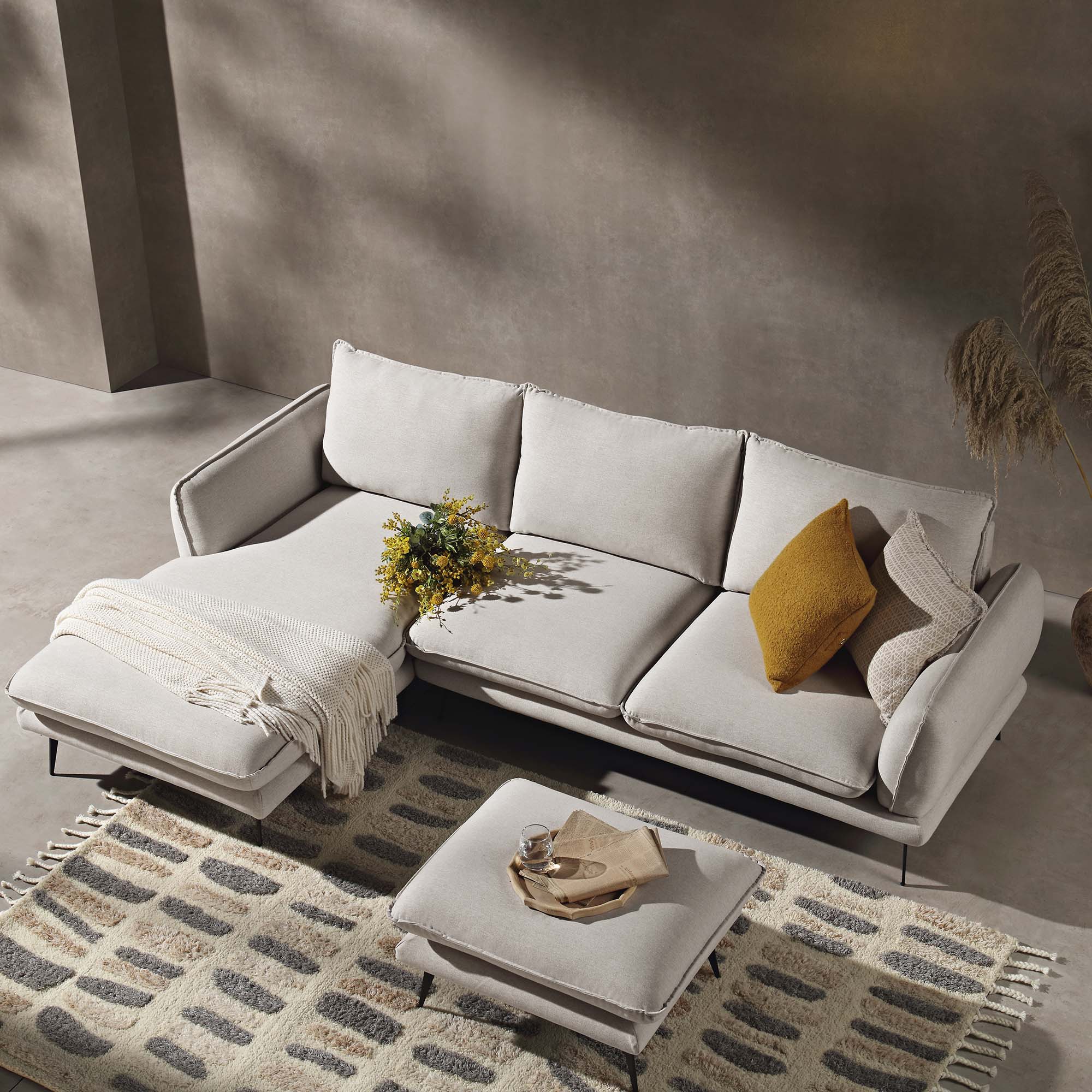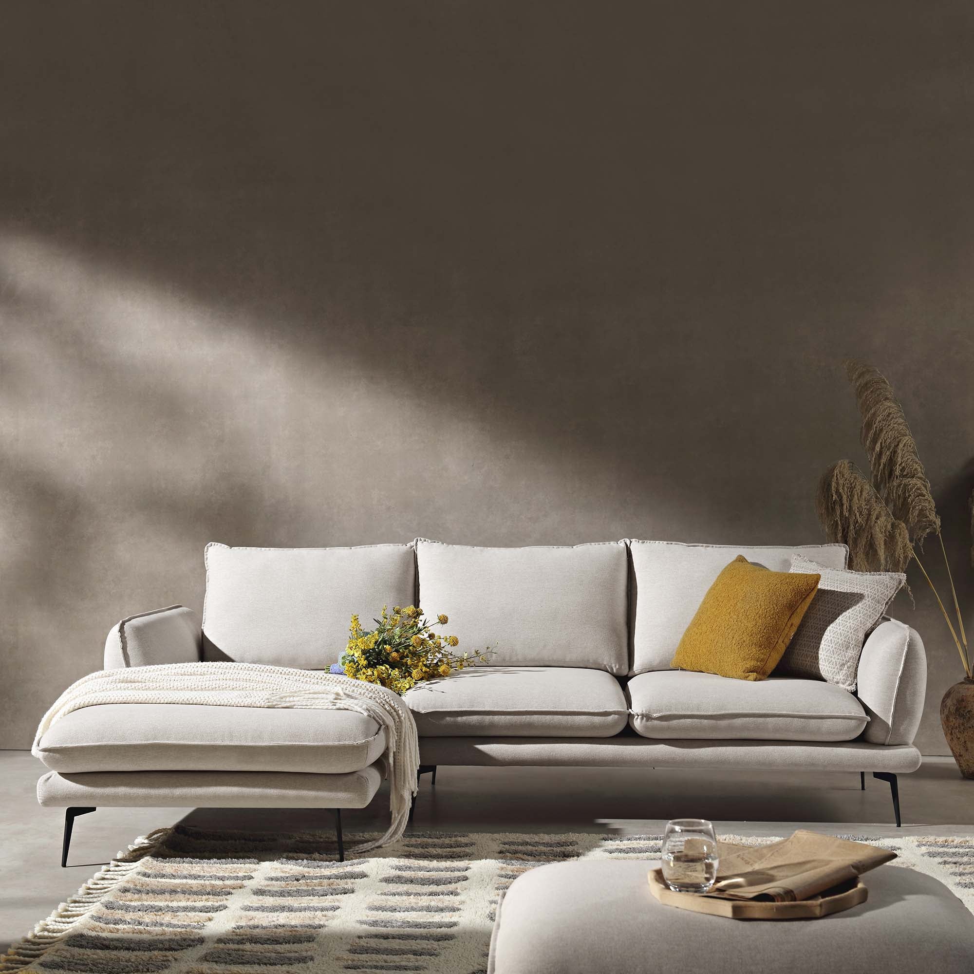 - Complete the look: Pictured with our Obriel Oatmeal Fabric Left Hand Grande Chaise Sofa is our Pebble Hand Tufted New Zealand Wool Rug