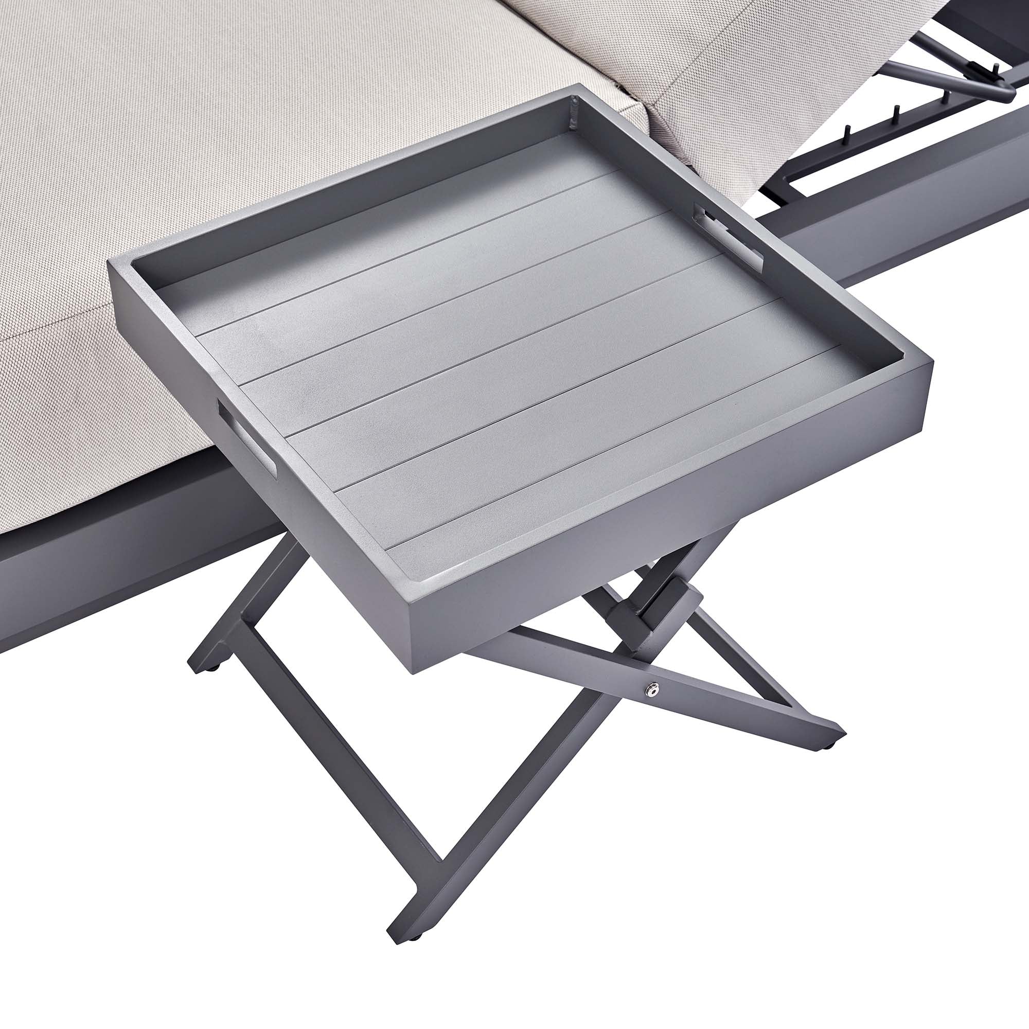 - Crafted from hard wearing and sturdy aluminium, our side table rust proof without compromising on style.