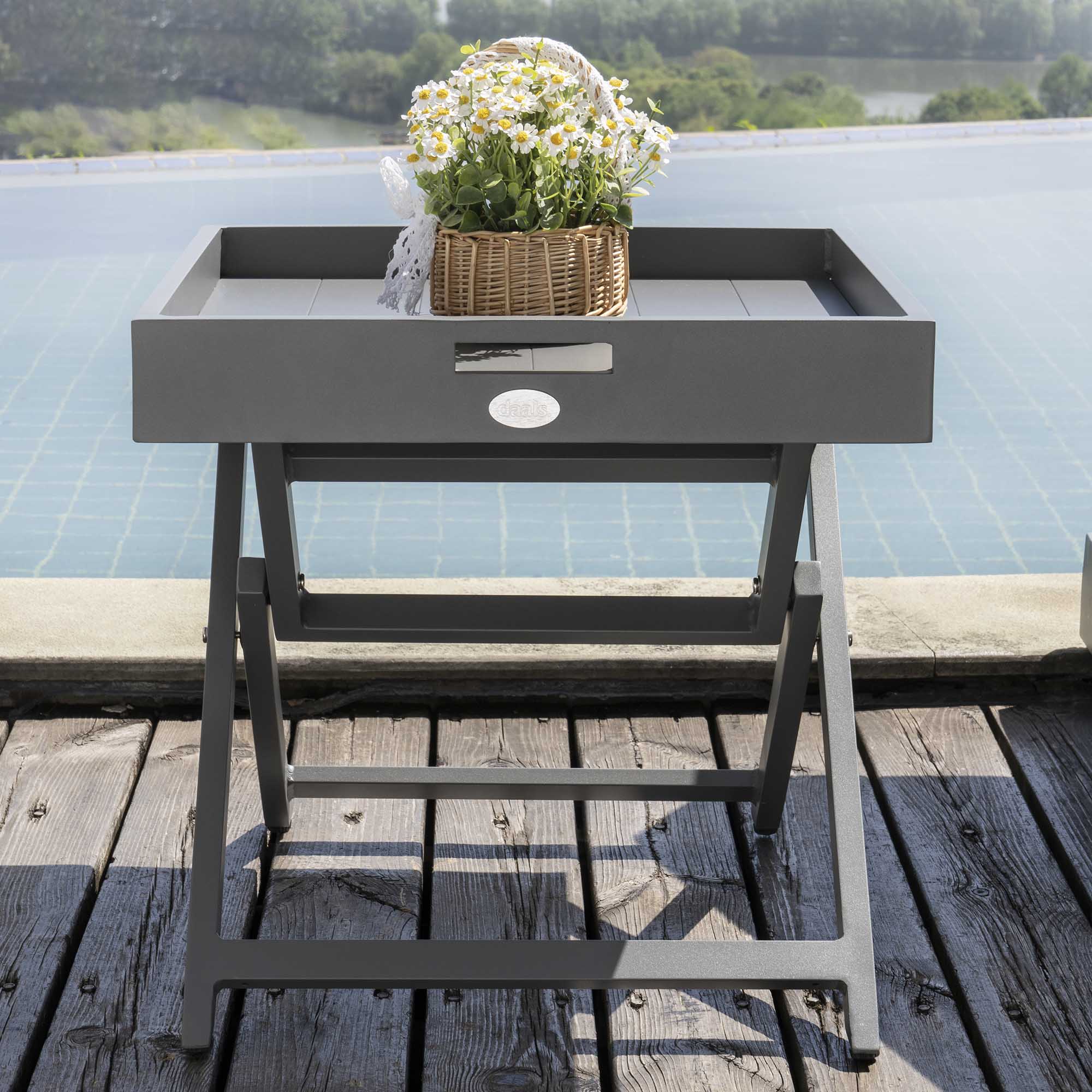 - This Aluminium Outdoor Side Table forms part of a larger collection, so take your pick and create your outdoor garden furniture set up as it suits you.
