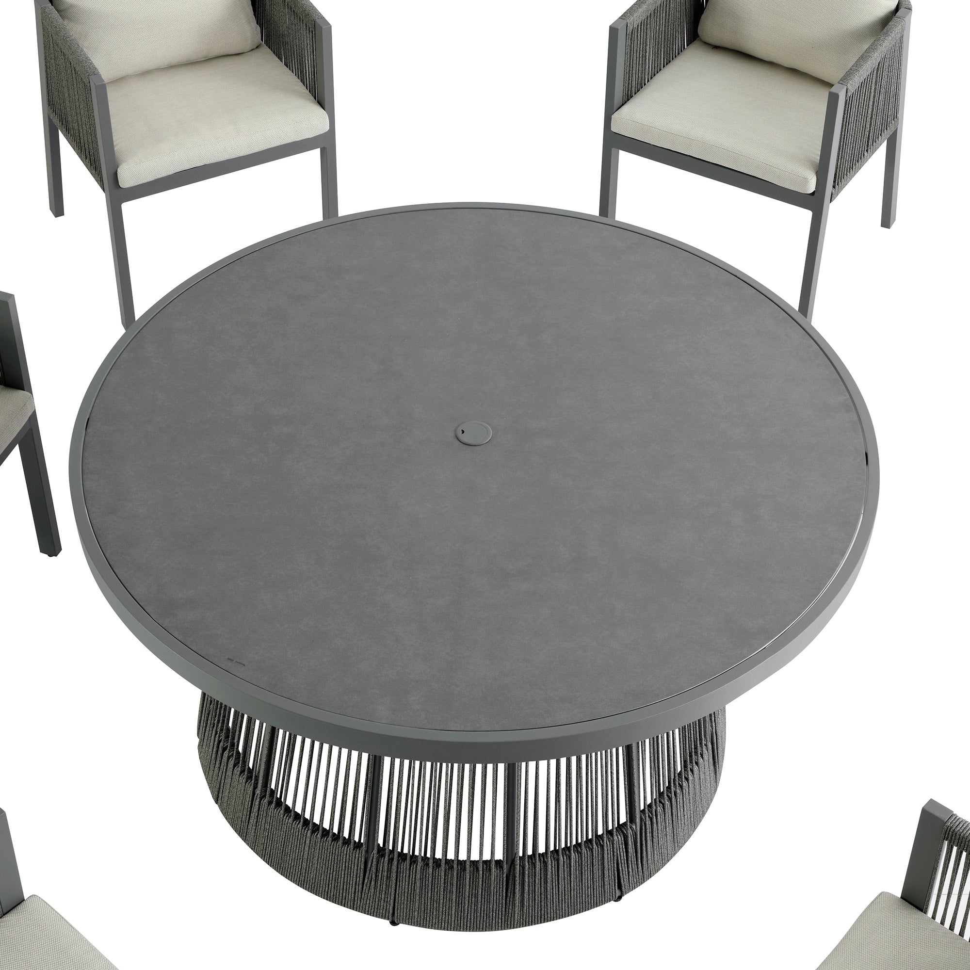 Pedra Rope and Aluminium Outdoor 6-Seater Round Dining Set, Grey