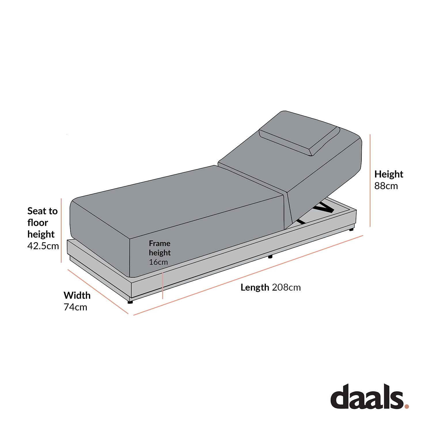 - Sun lounger dimensions: L 208 x W 74 x H 42.5~88cm